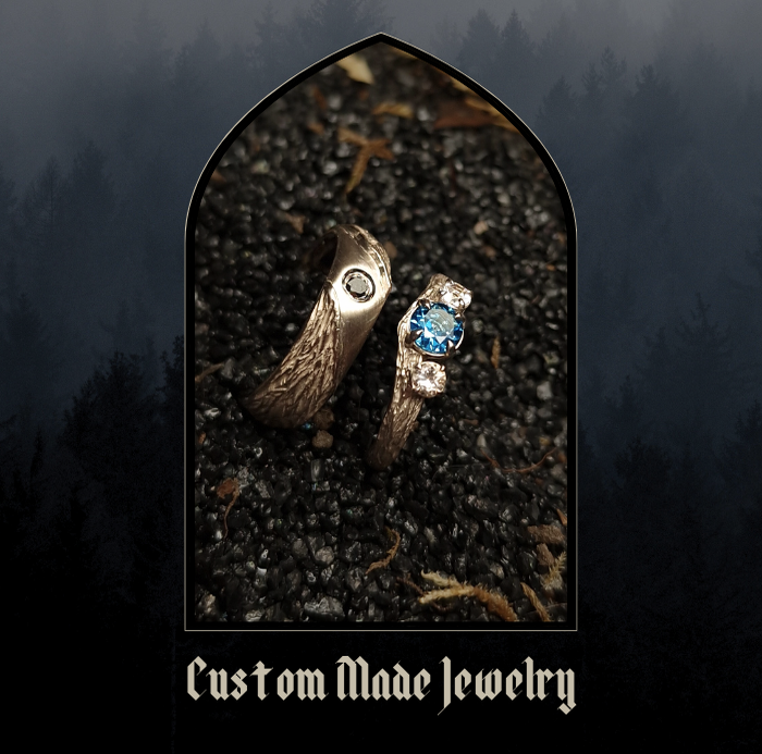 Handmade sterling silver rings and necklaces, gemstone jewelry and bespoke necklaces inspired by gothic romance, fantasy worlds and occult symbolism. Crafted by goldsmiths using high quality materials including sterling silver and 14K gold.