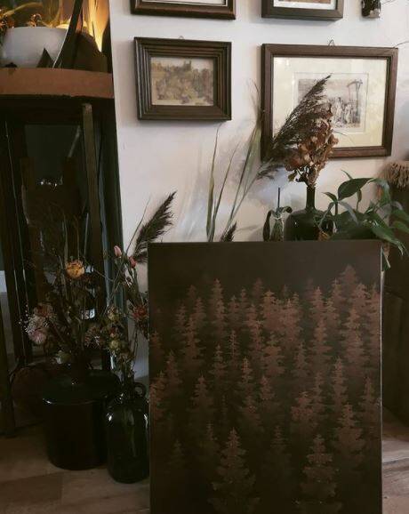Another big piece of artwork, ordered by a good friend. This dewy atmosphere and the wild river running between it, I just loved the outcome. Because of the way I painted this, the colors change from every angle you look at it.