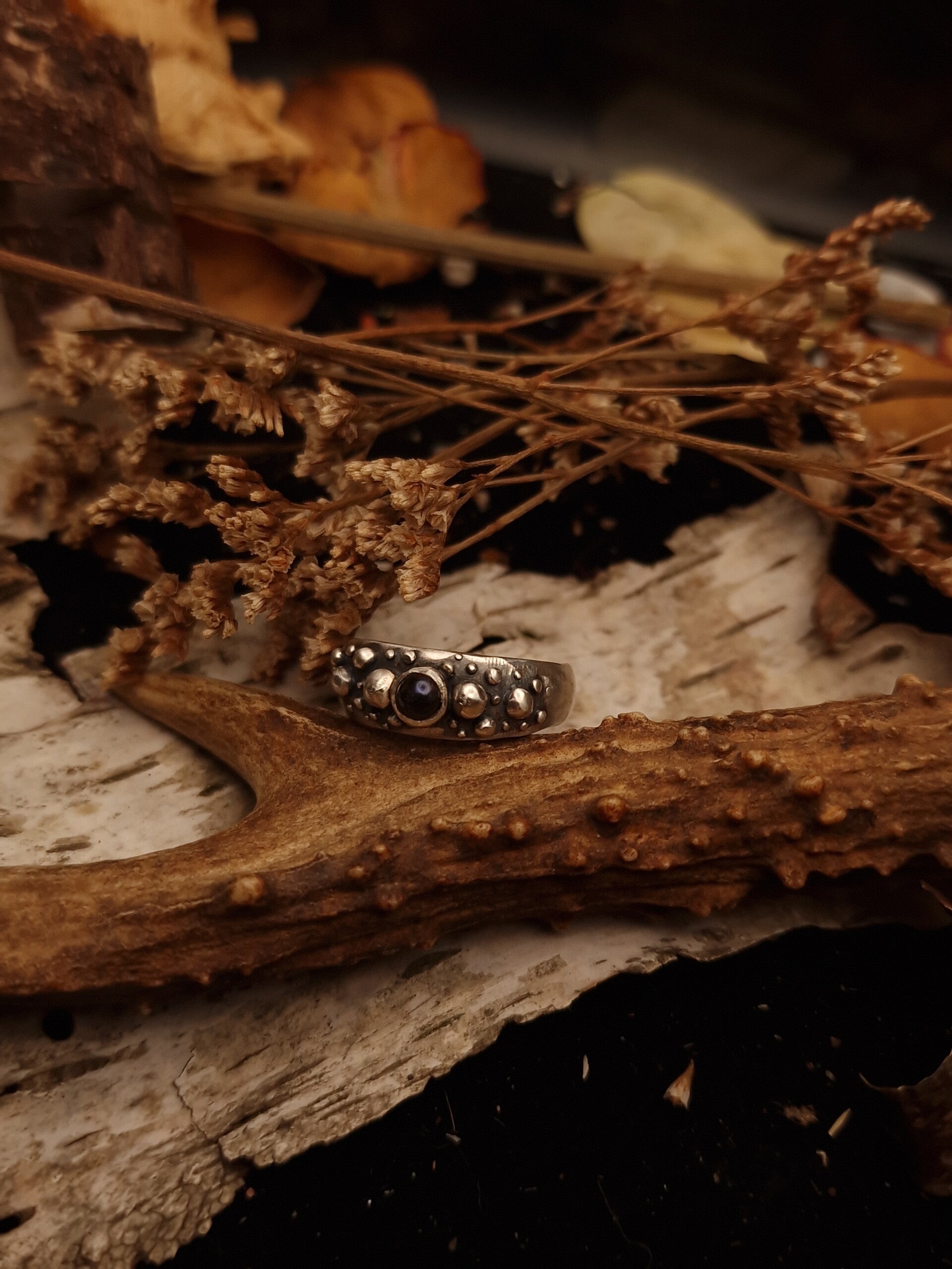 Methods used: shaping, soldering, engraving, stone setting, blackening, polishing.