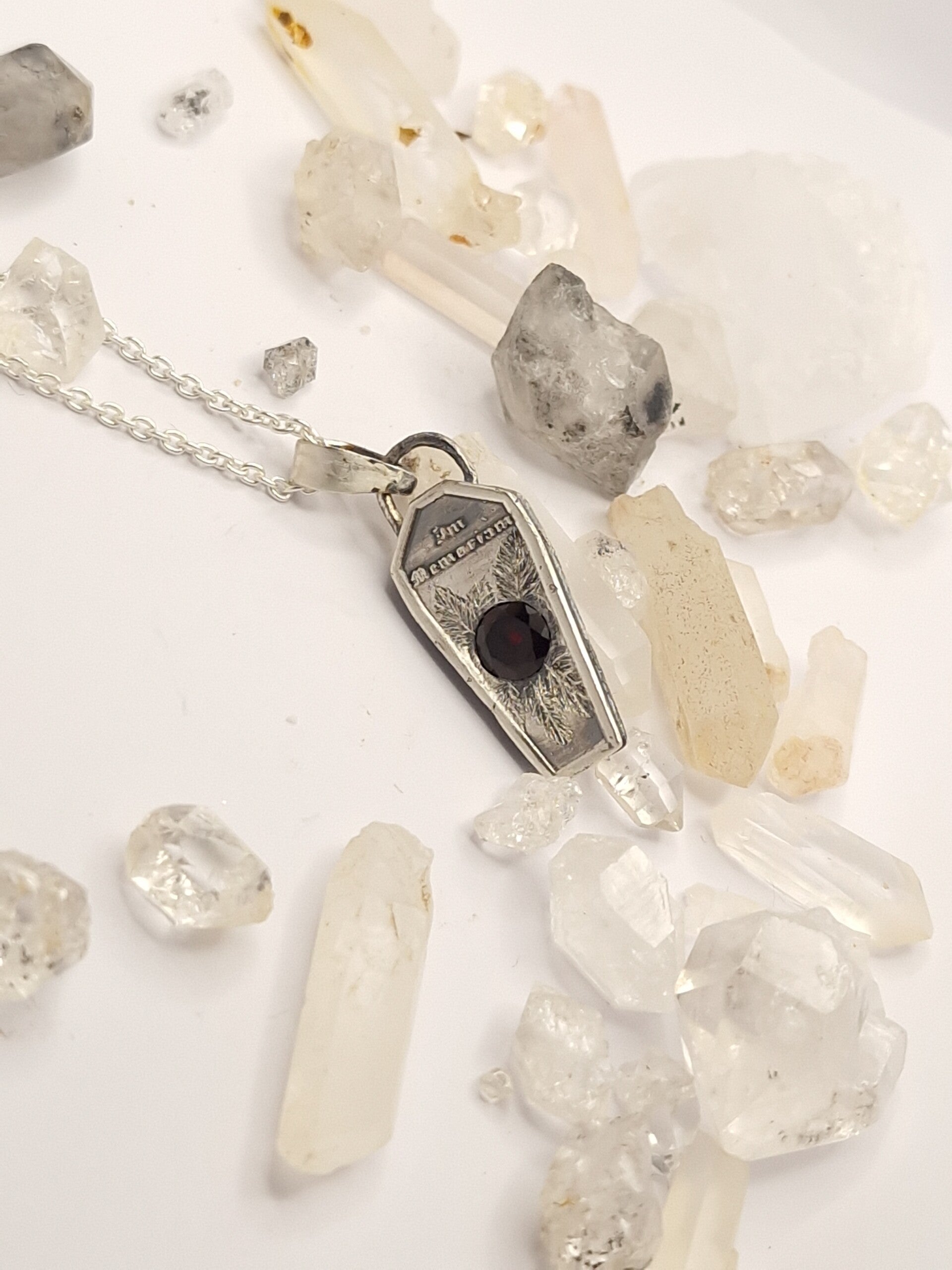 Im memoriam coffin Pendant | garnet | Curiosity Cabinet