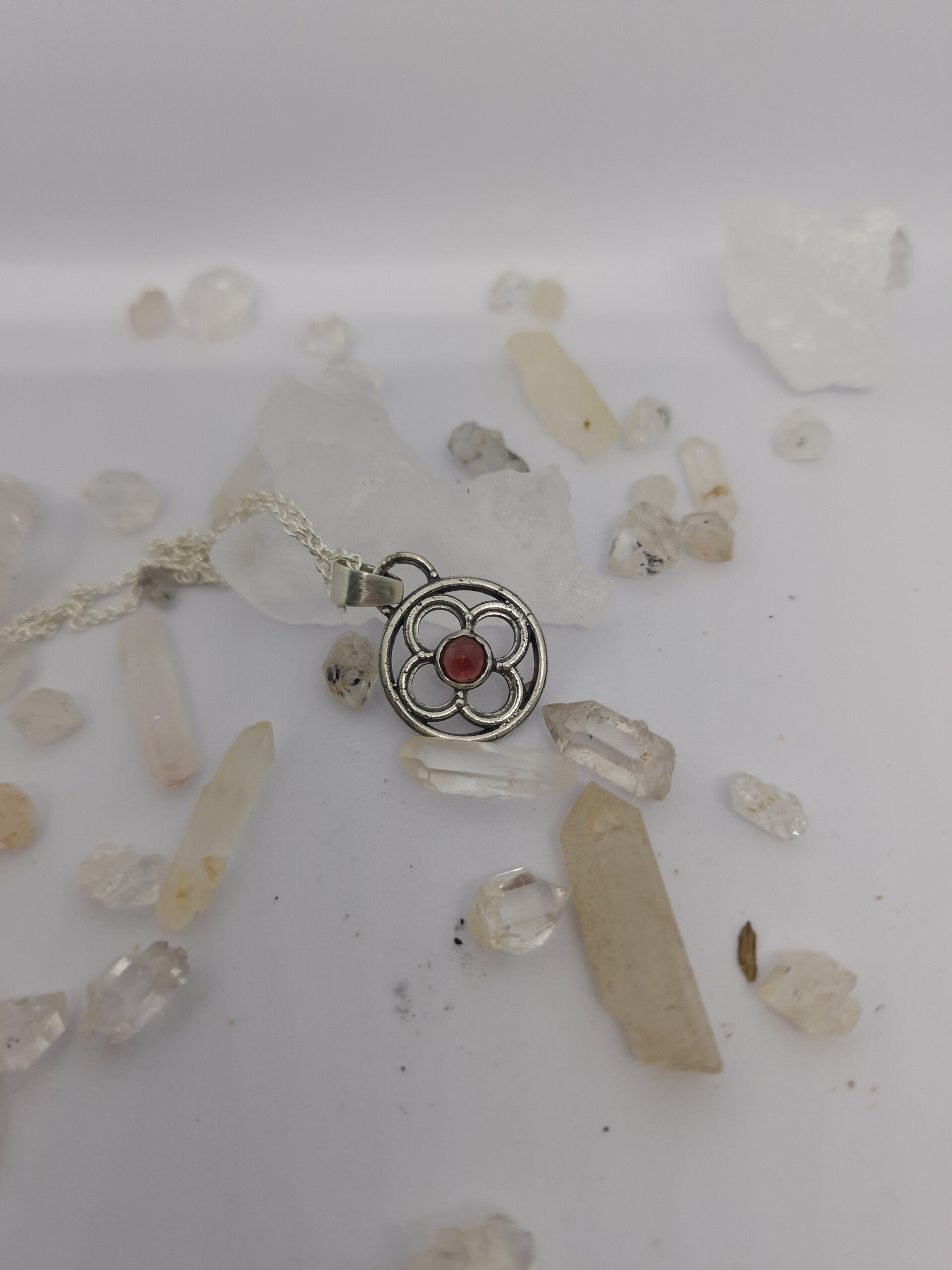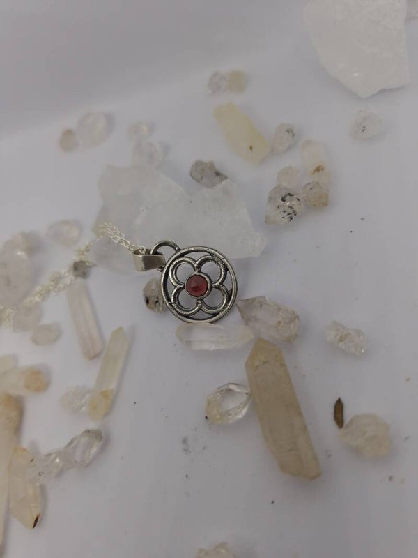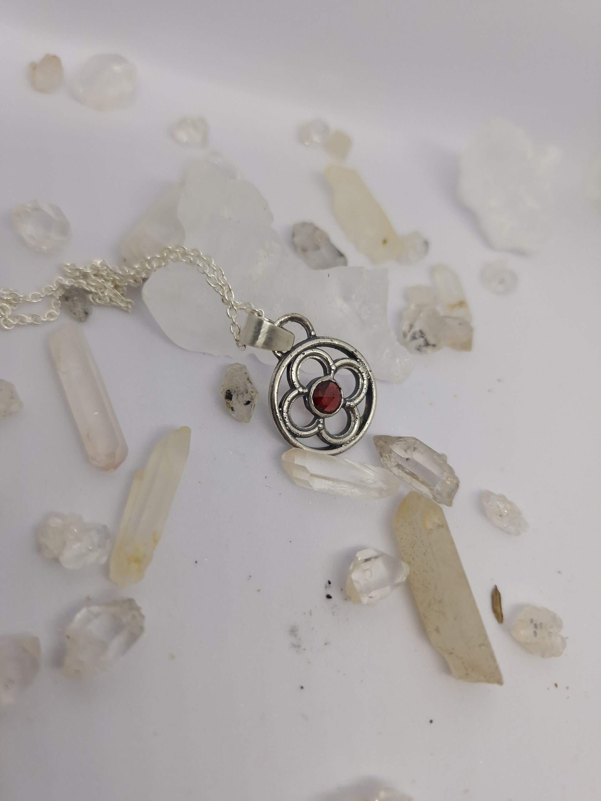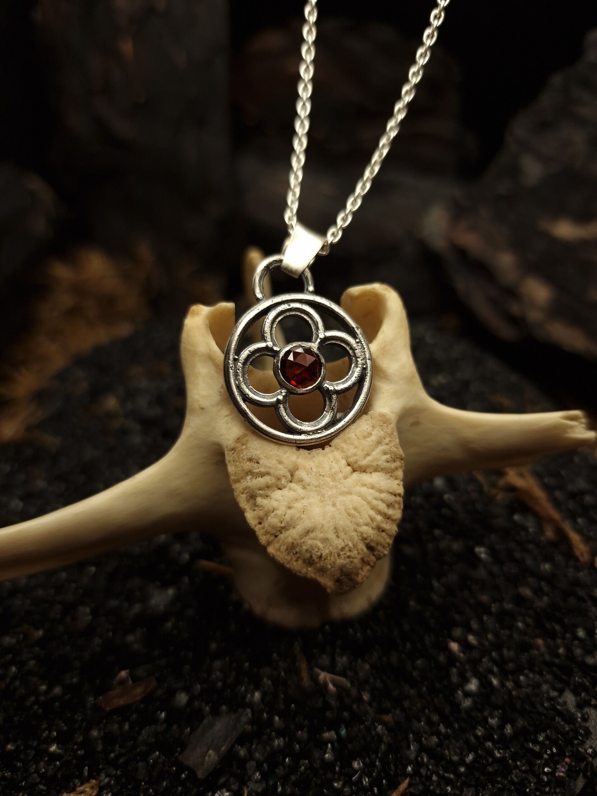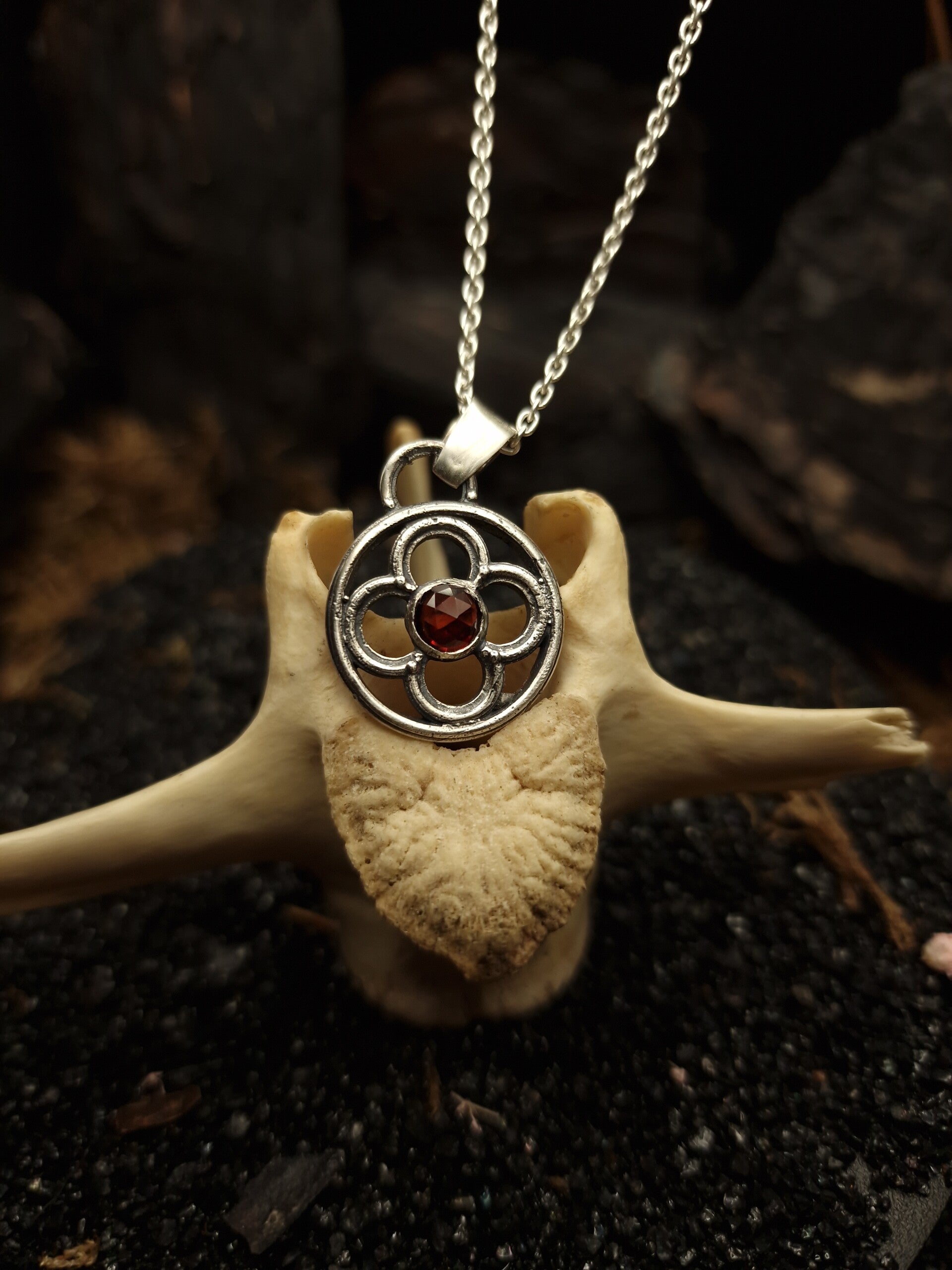 From the heart of Atelier Wolfstone’s Regina Collection comes the Blood Rose Pendant with garnet — a darkly romantic homage to gothic florals and royal passion. Handcrafted in sterling silver, this pendant blooms with baroque elegance, while the deep red garnet burns like a secret vow whispered beneath cathedral arches. For those who rule in velvet, lace, and shadow.