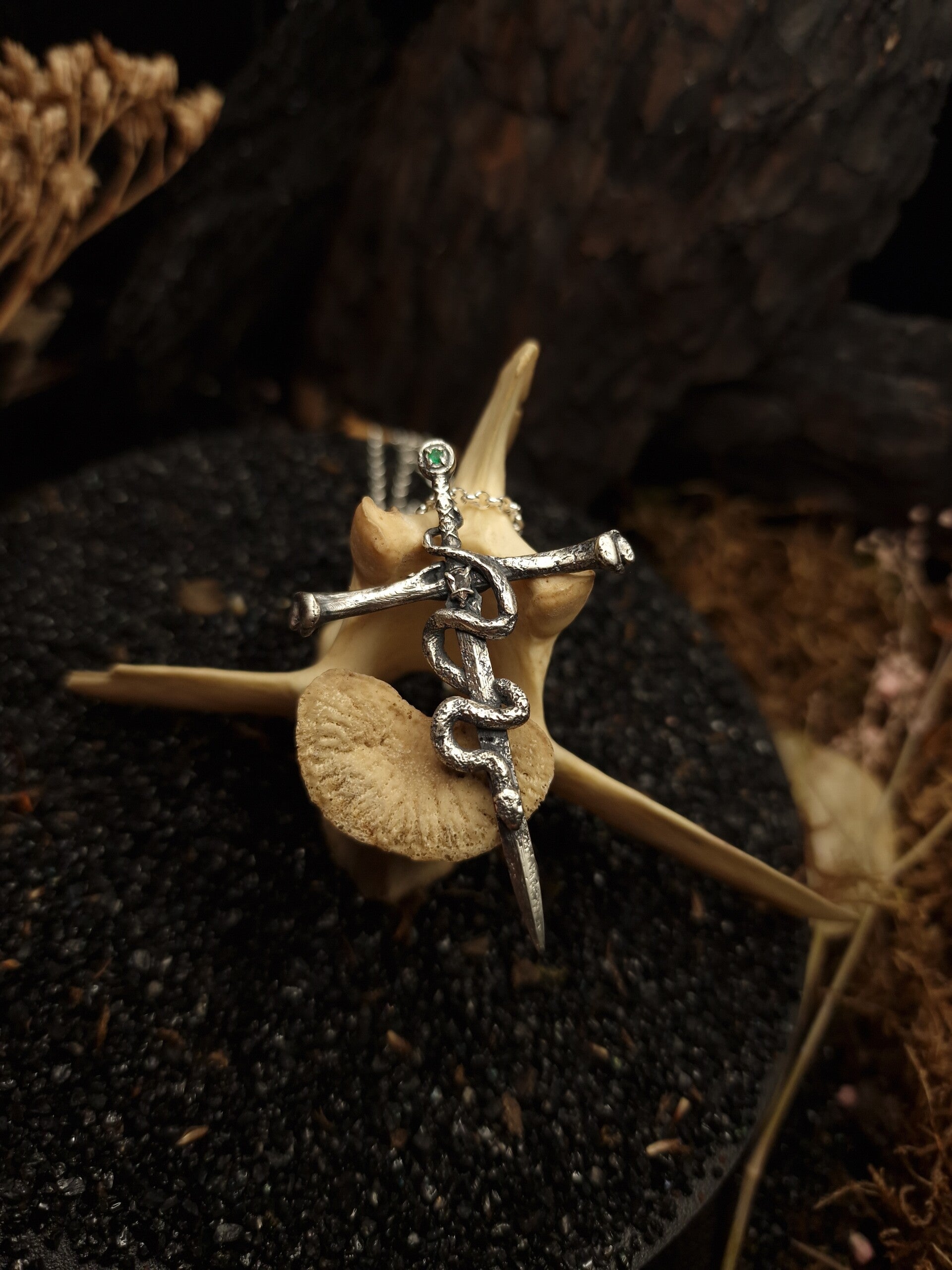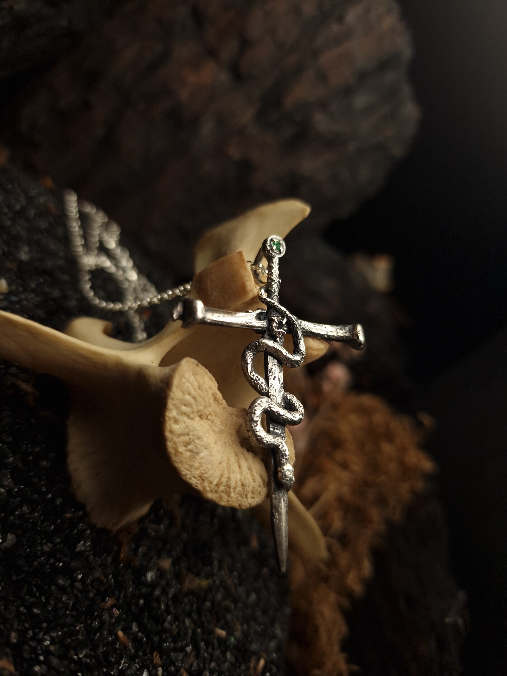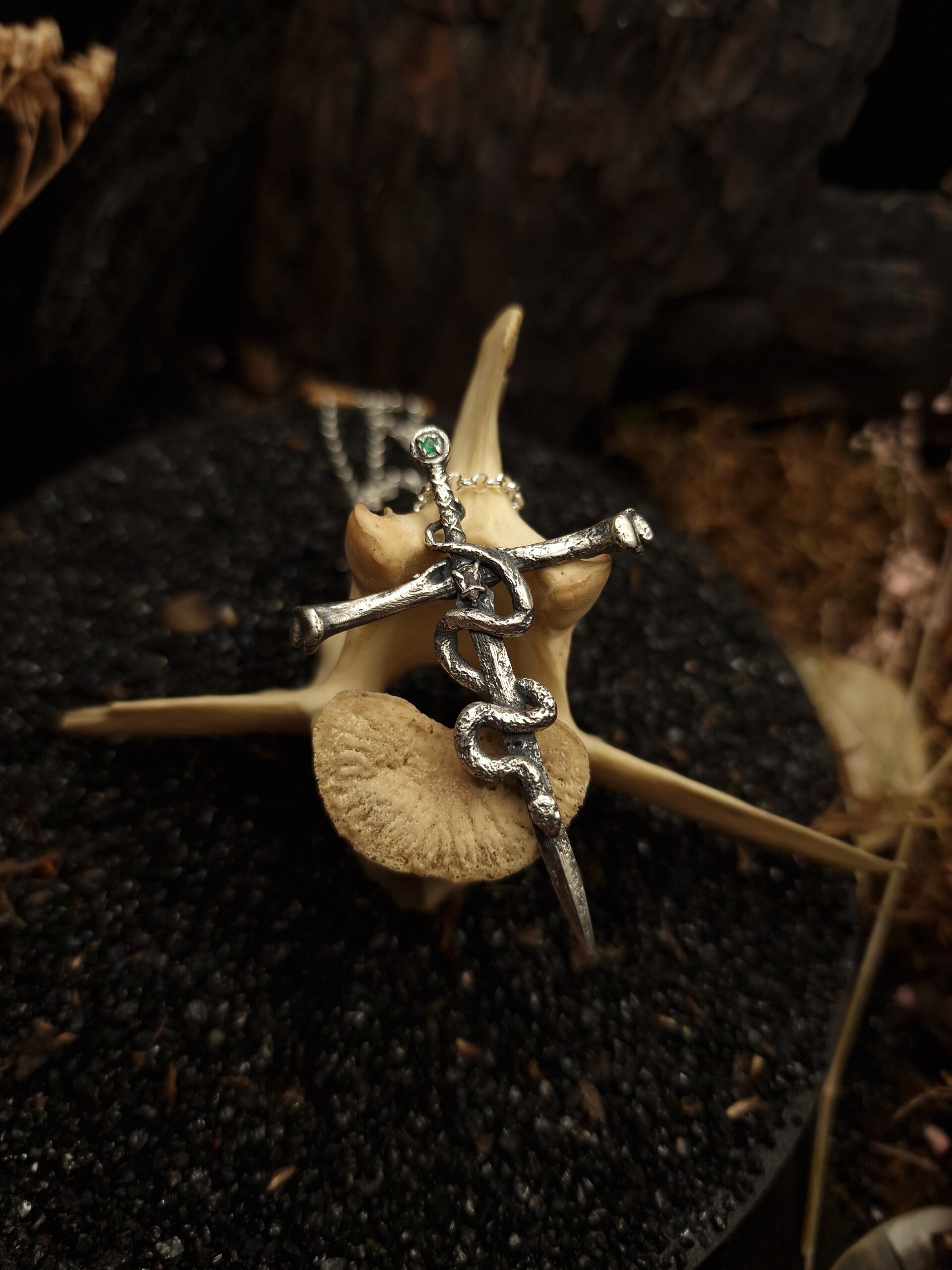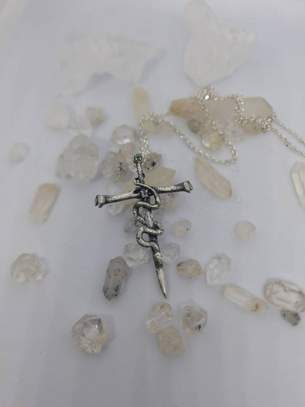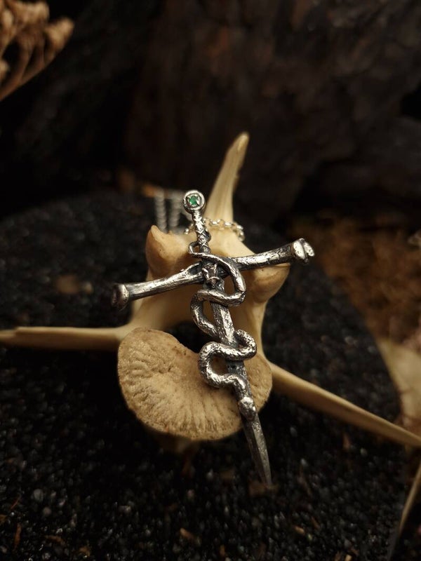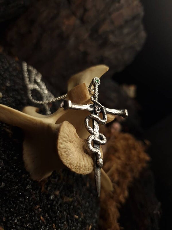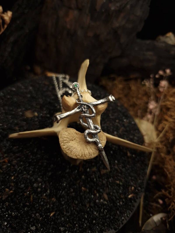 The venomous sword Pendant | Emerald & Morganite | Nox ex Libris
