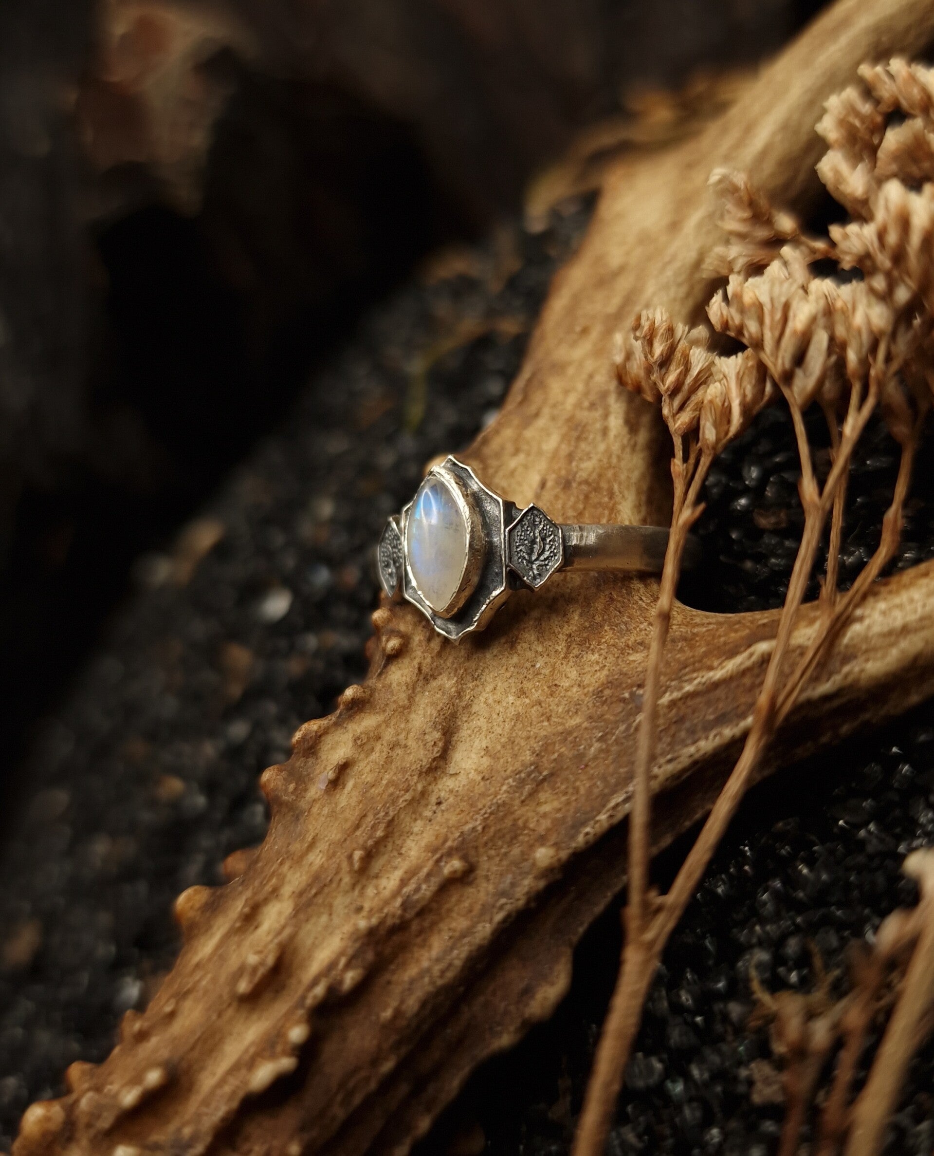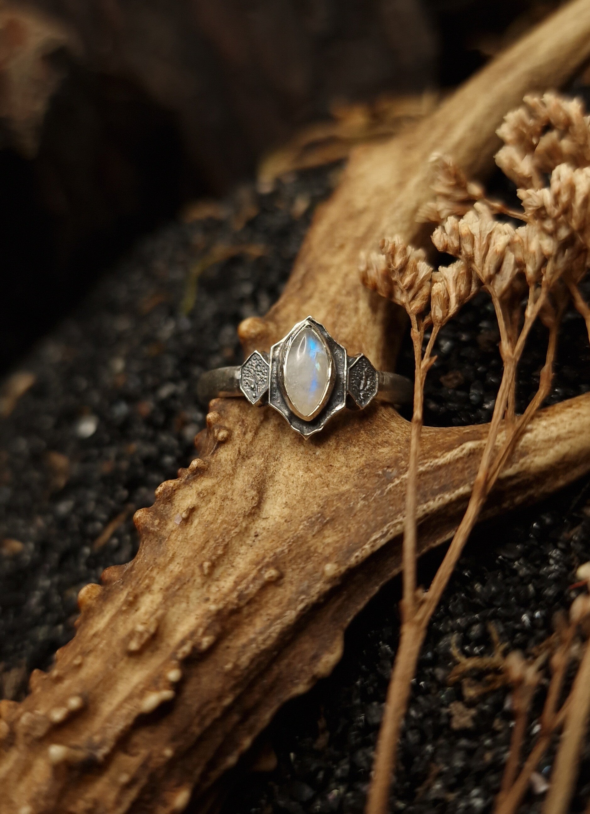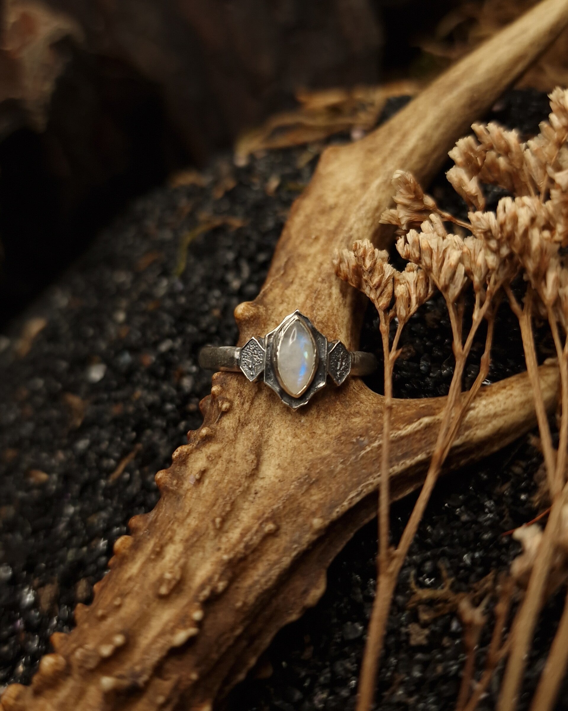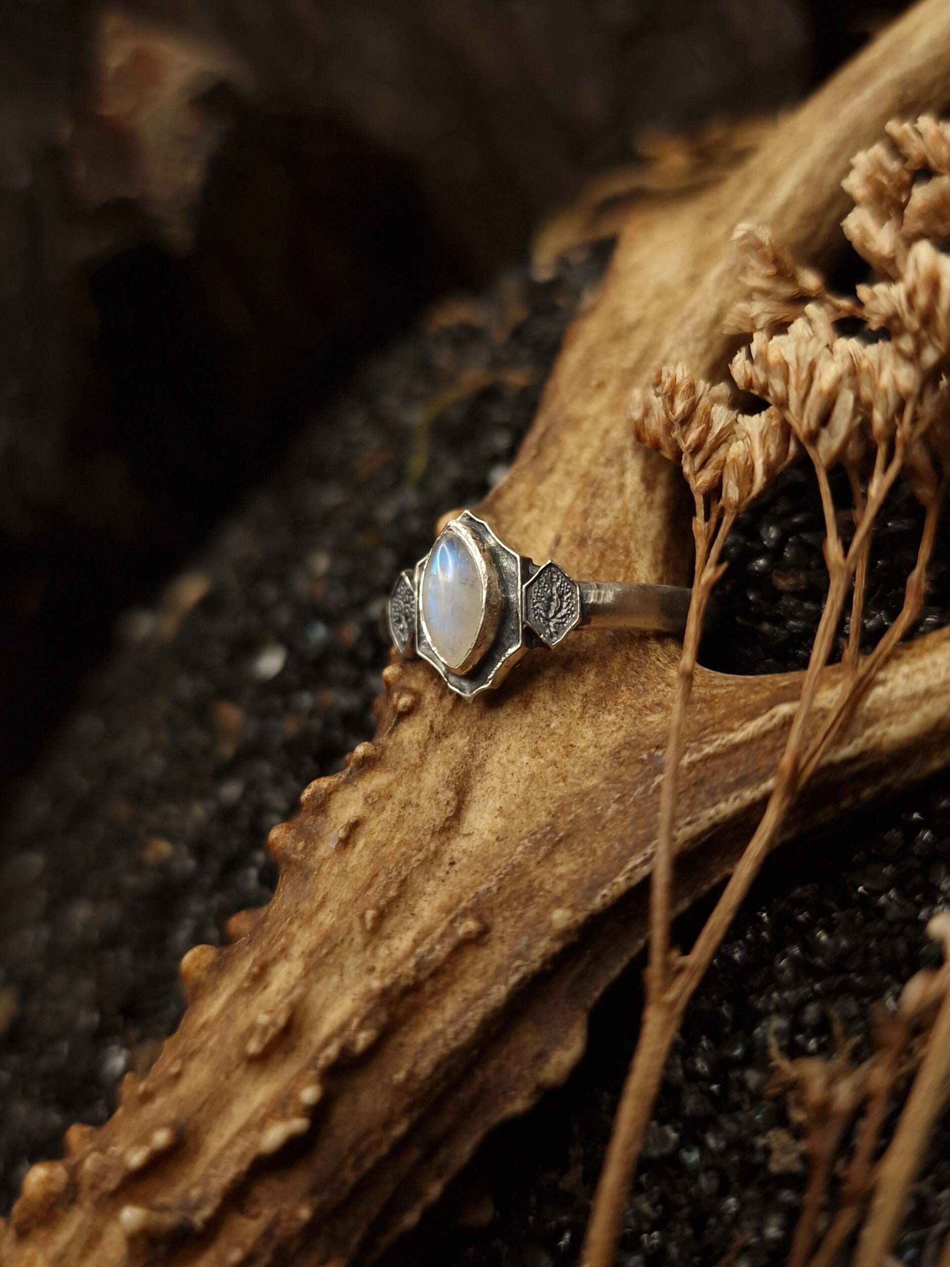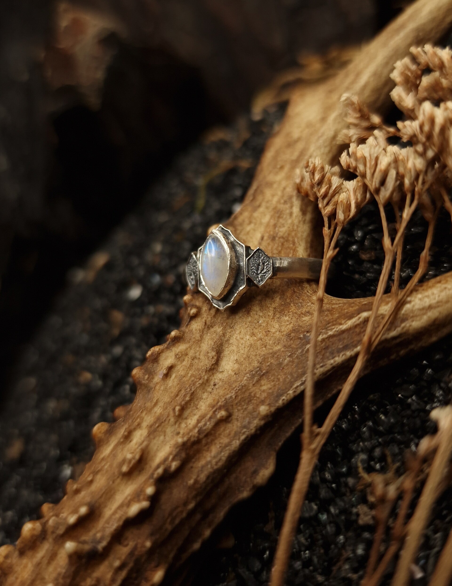 The mirrored moon Ring | size 19 | Moonstone | Curiosity Cabinet