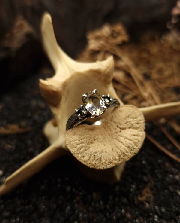Methods used: 3D designing, 3D printing, casting, sawing, shaping, soldering, stonesetting, engraving, blackening, polishing.