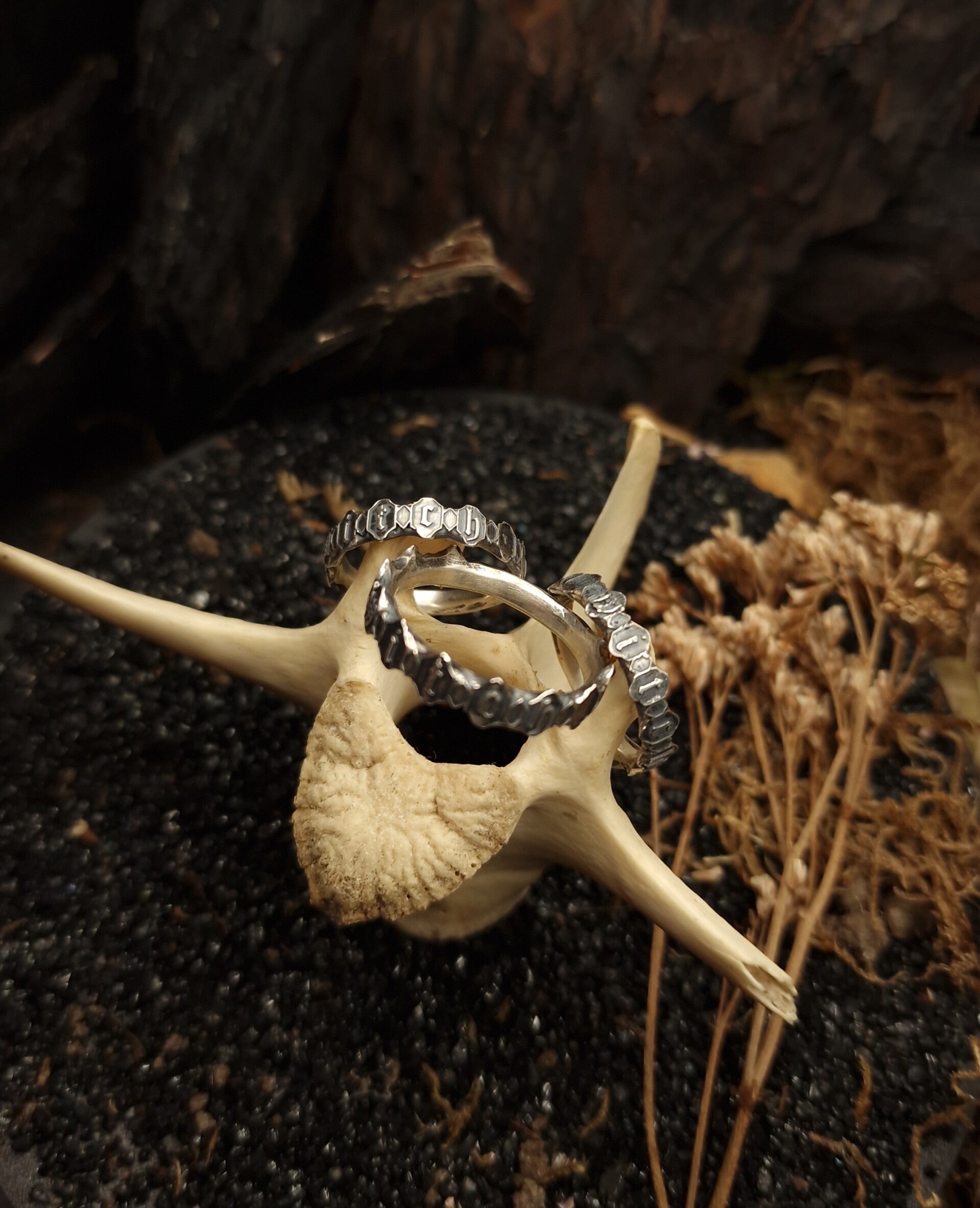 Methods used: 3D designing, 3D printing, casting, sawing, shaping, engraving, blackening, polishing.