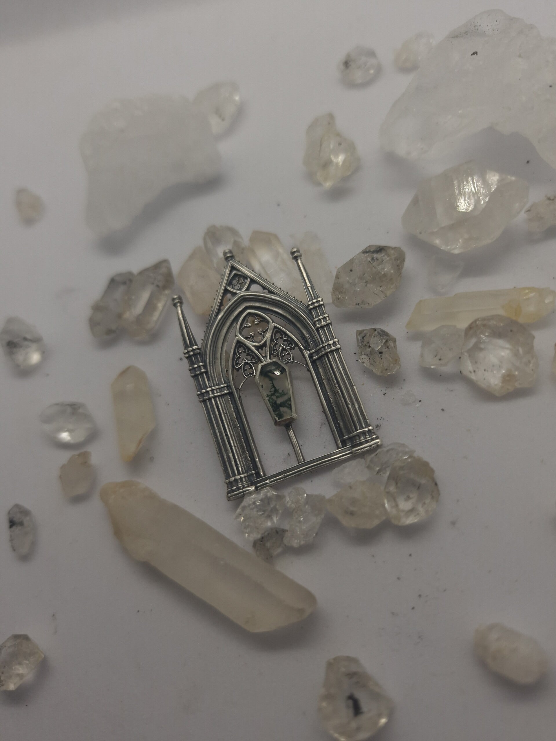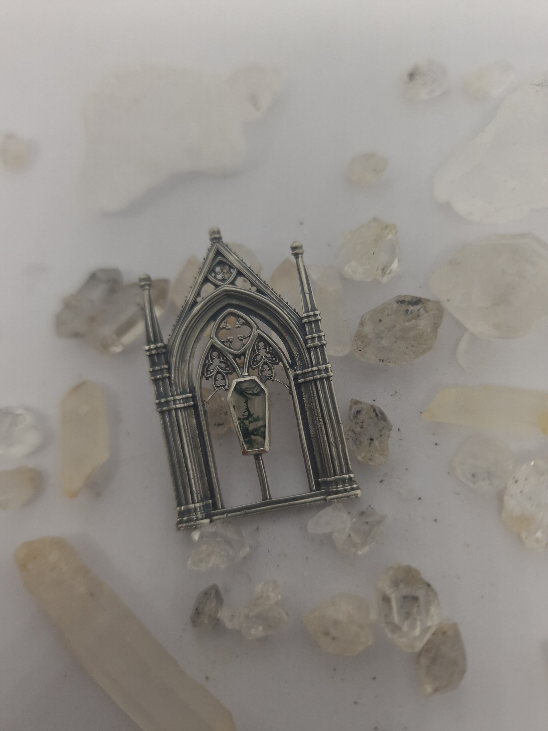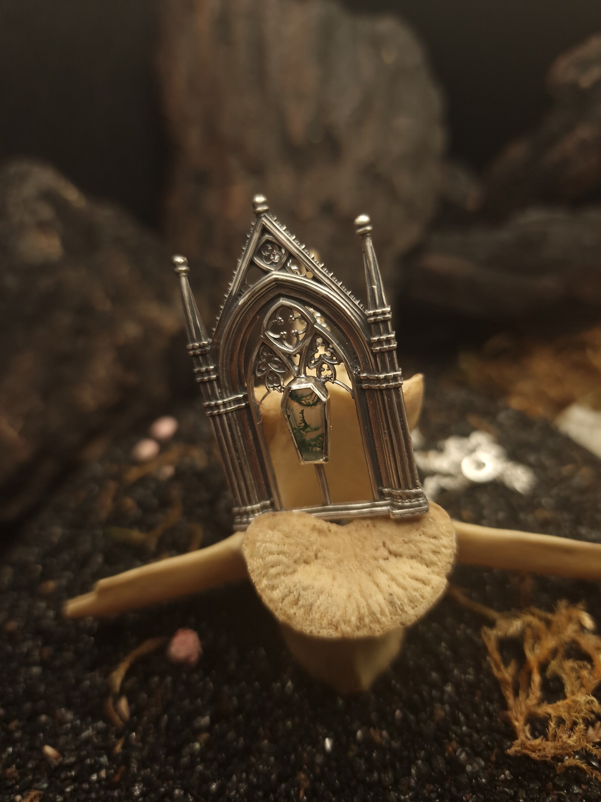 The dead gardens cathedralcore pendant | One of a Kind | Moss Agate | Regina