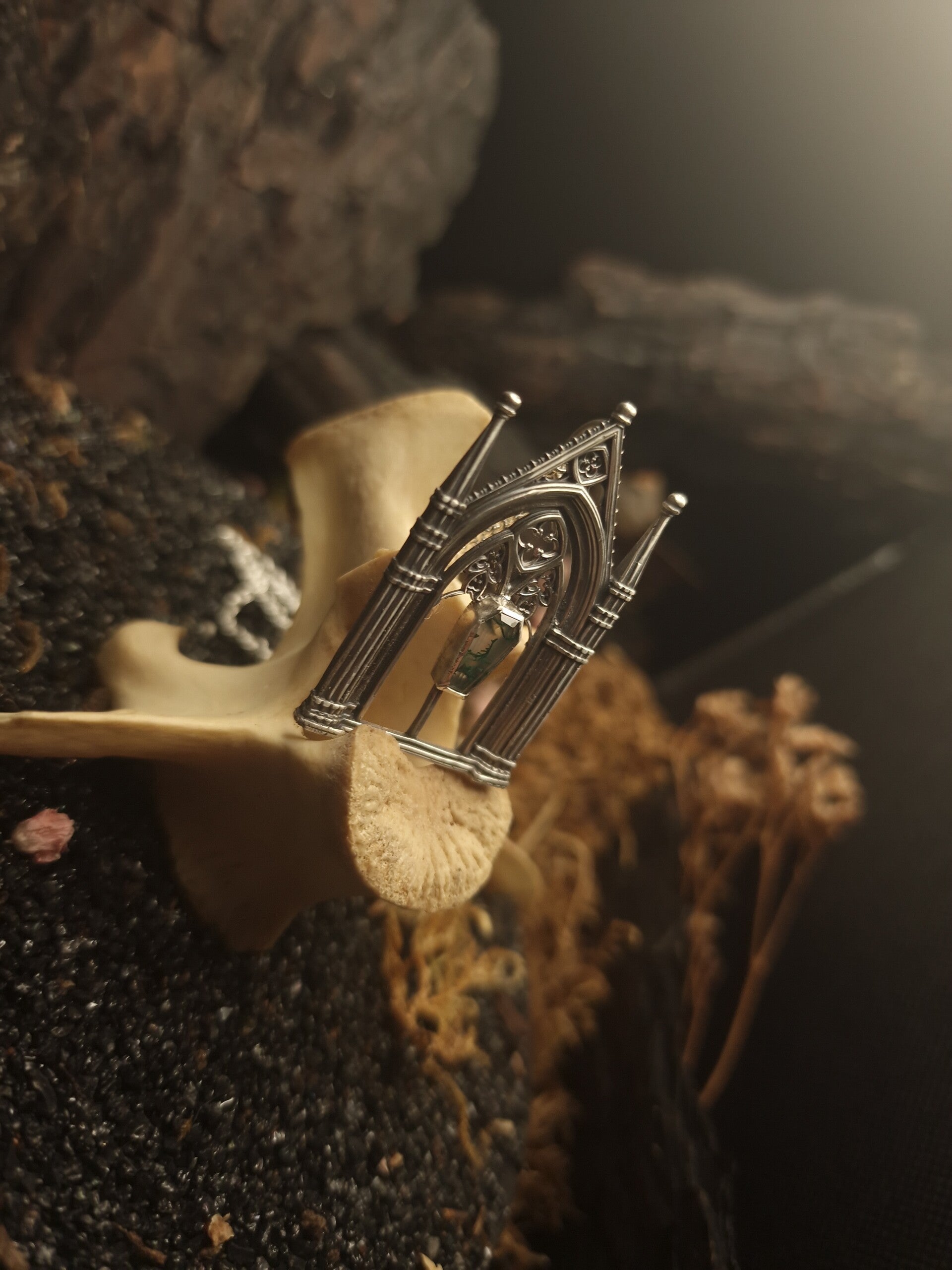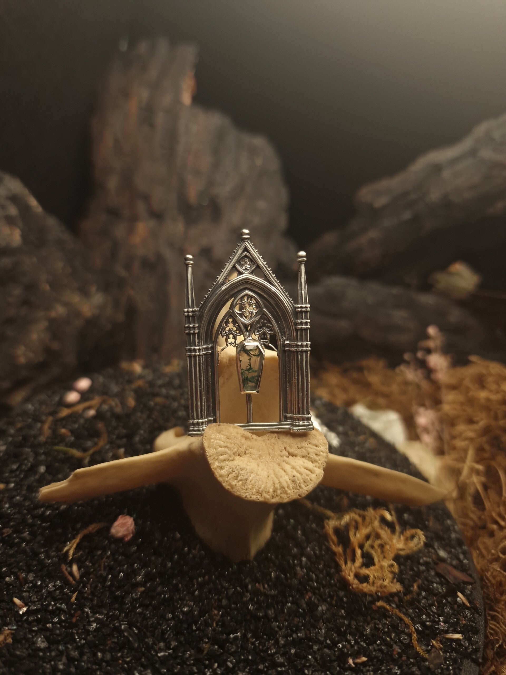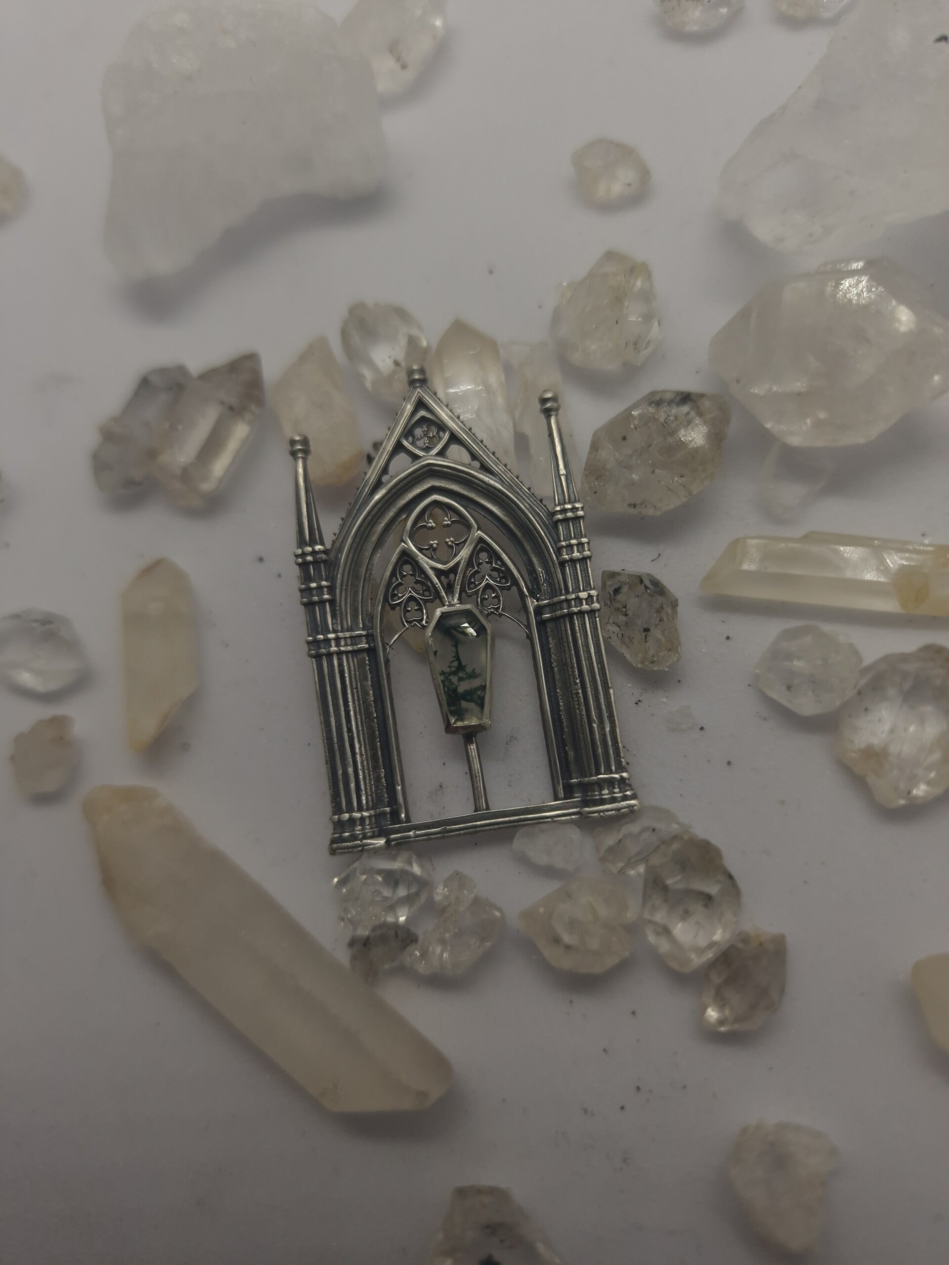 The dead gardens cathedralcore pendant | One of a Kind | Moss Agate | Regina