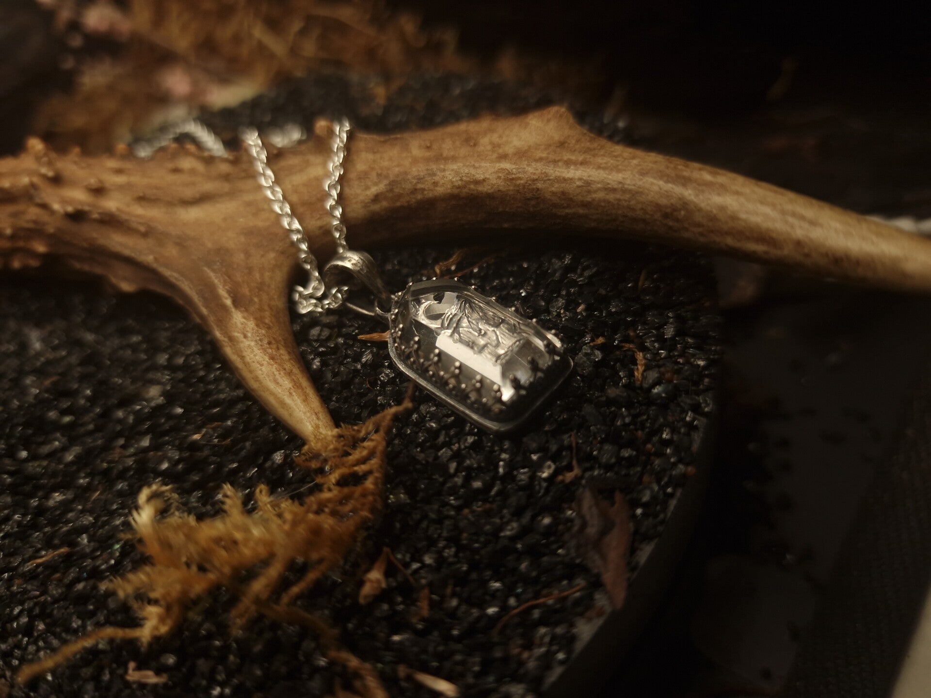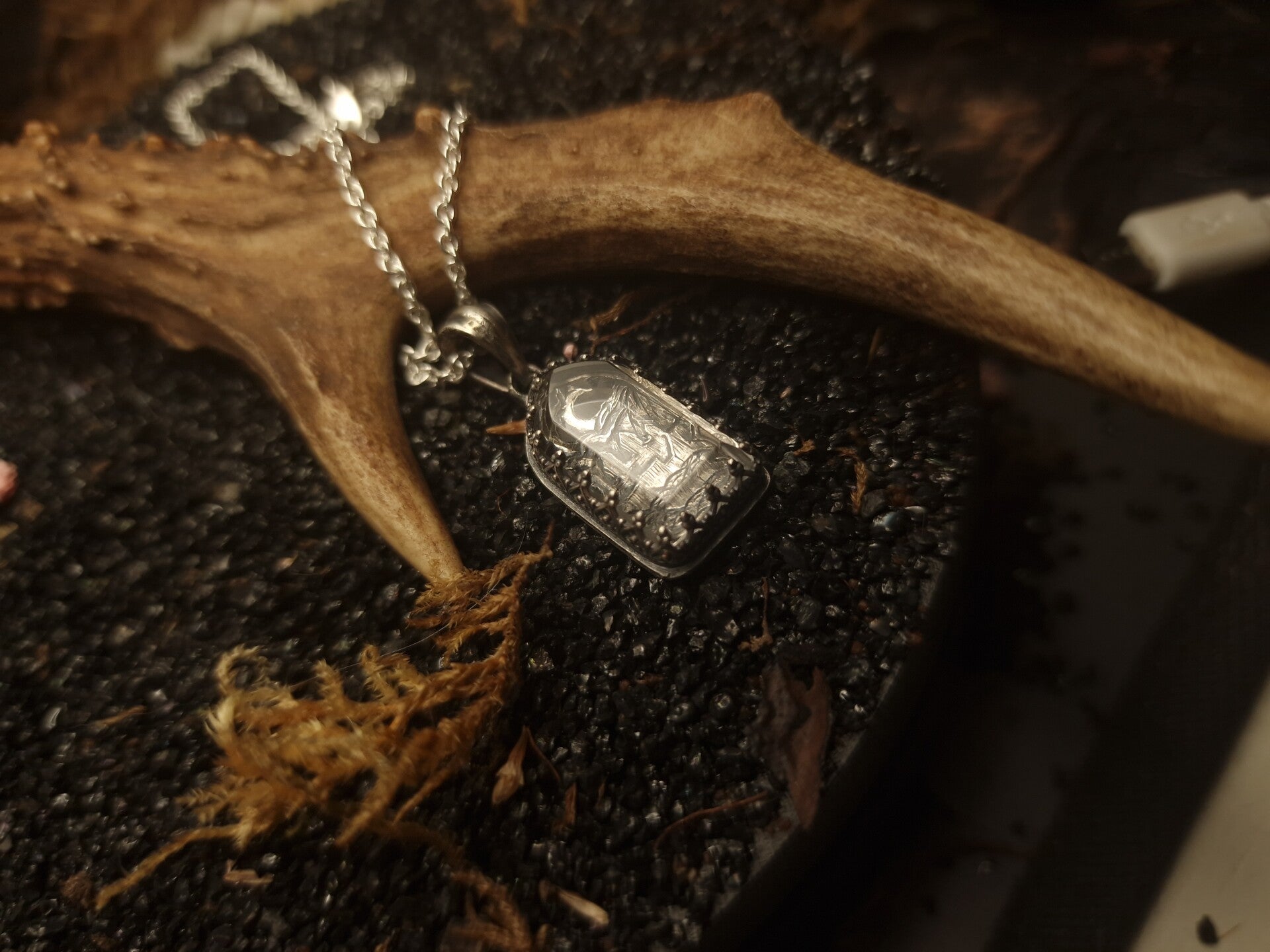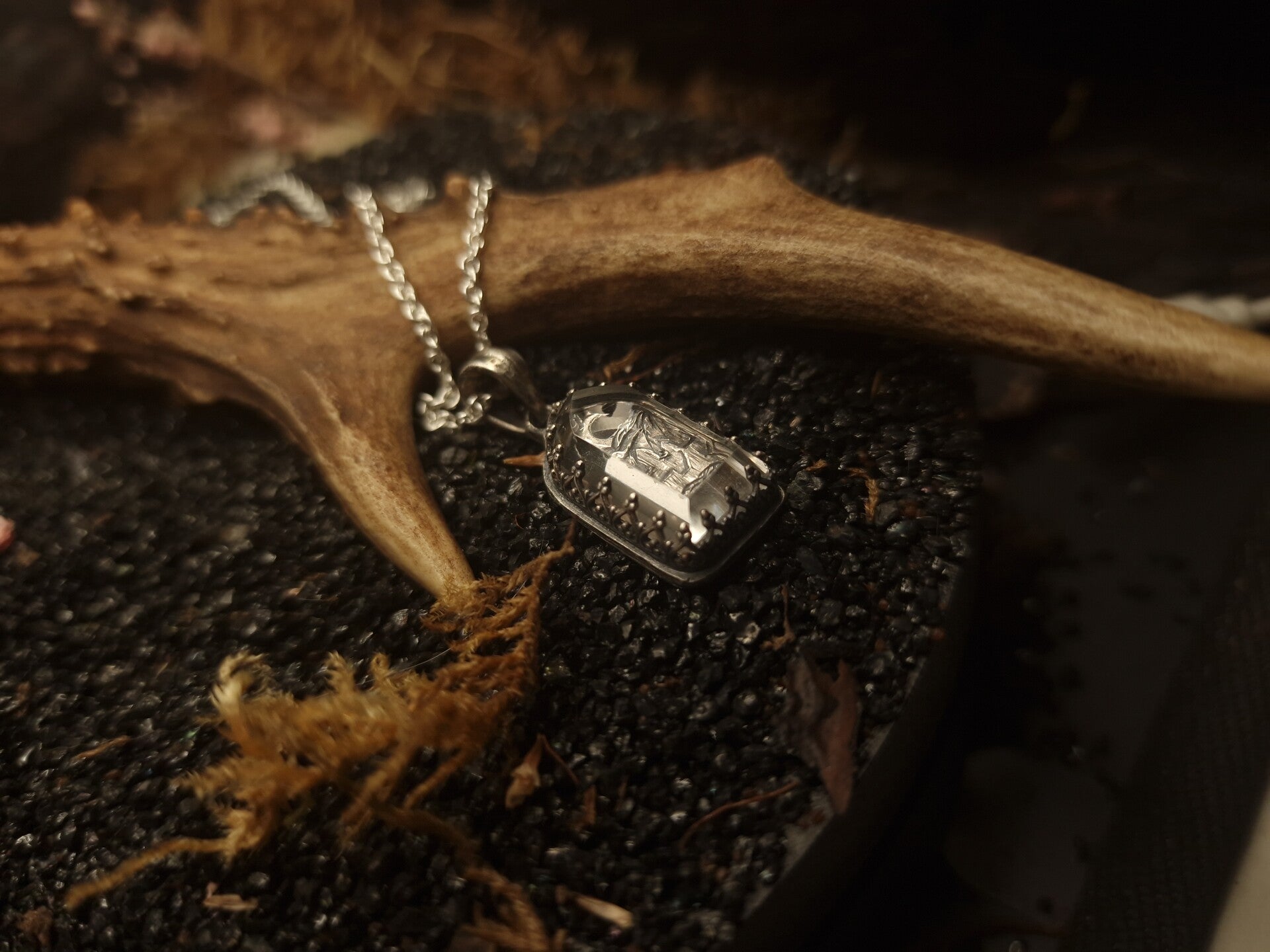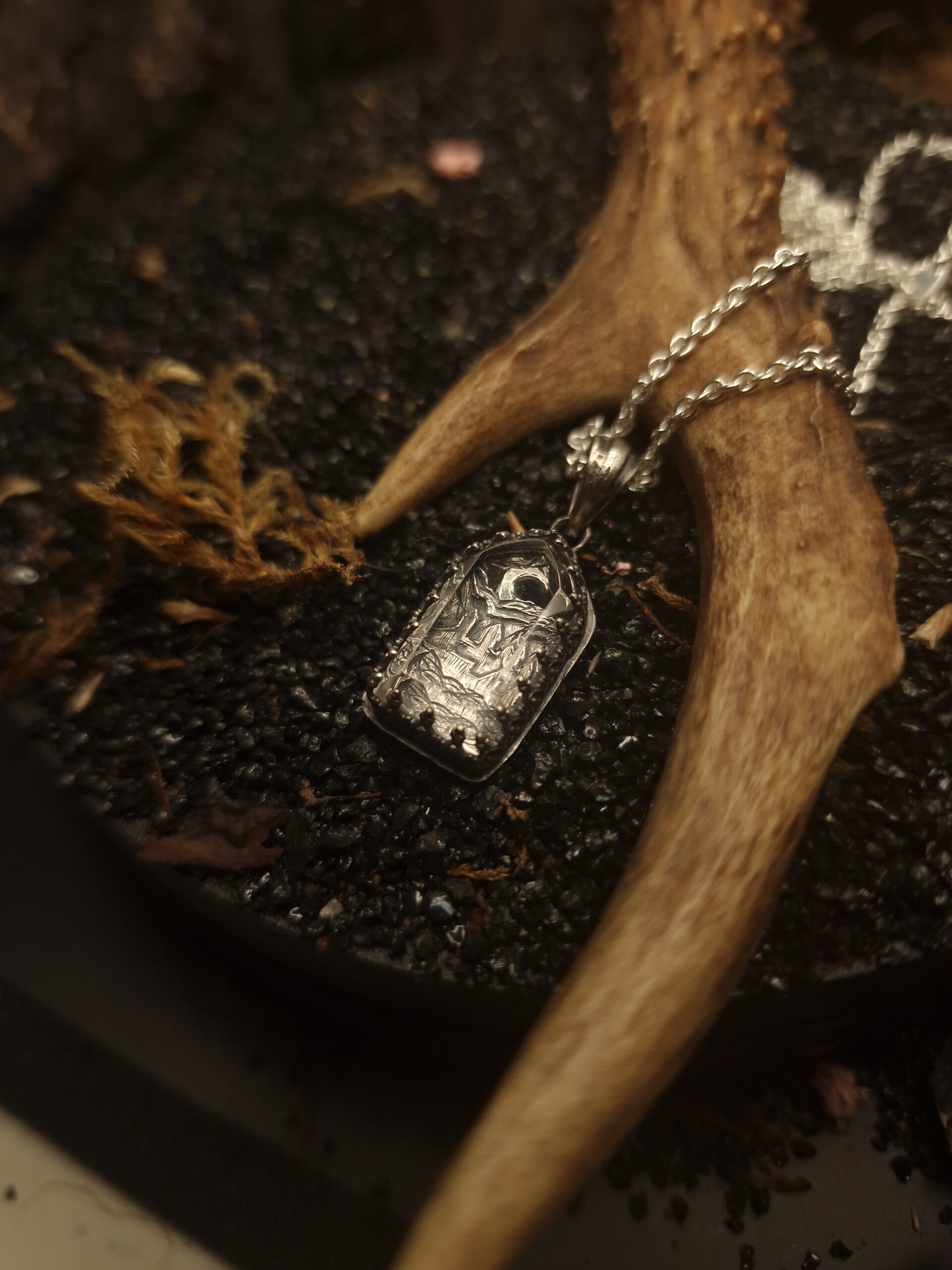 The standard price does not include a sterling silver necklace. Instead, the pendant comes with a faux leather cord. Many people already have silver necklaces at home, which can easily be paired with this pendant for a personalized touch. We apply this principle to all pendants where the design allows it, thanks to the inclusion of a bail. Please note that this option does not apply to every necklace design.