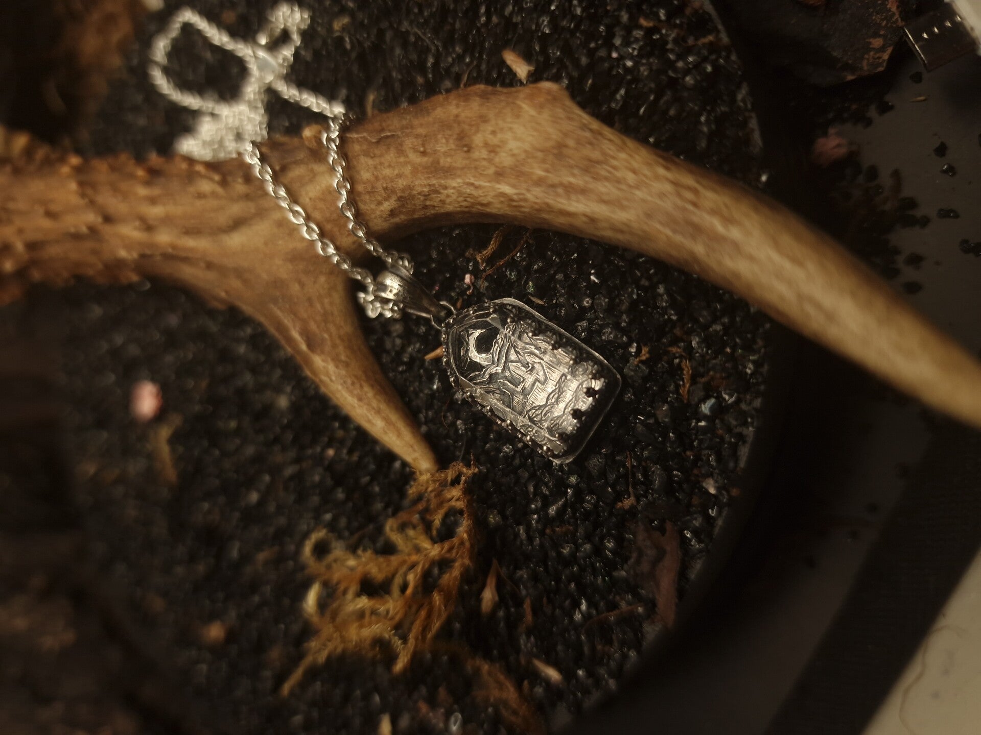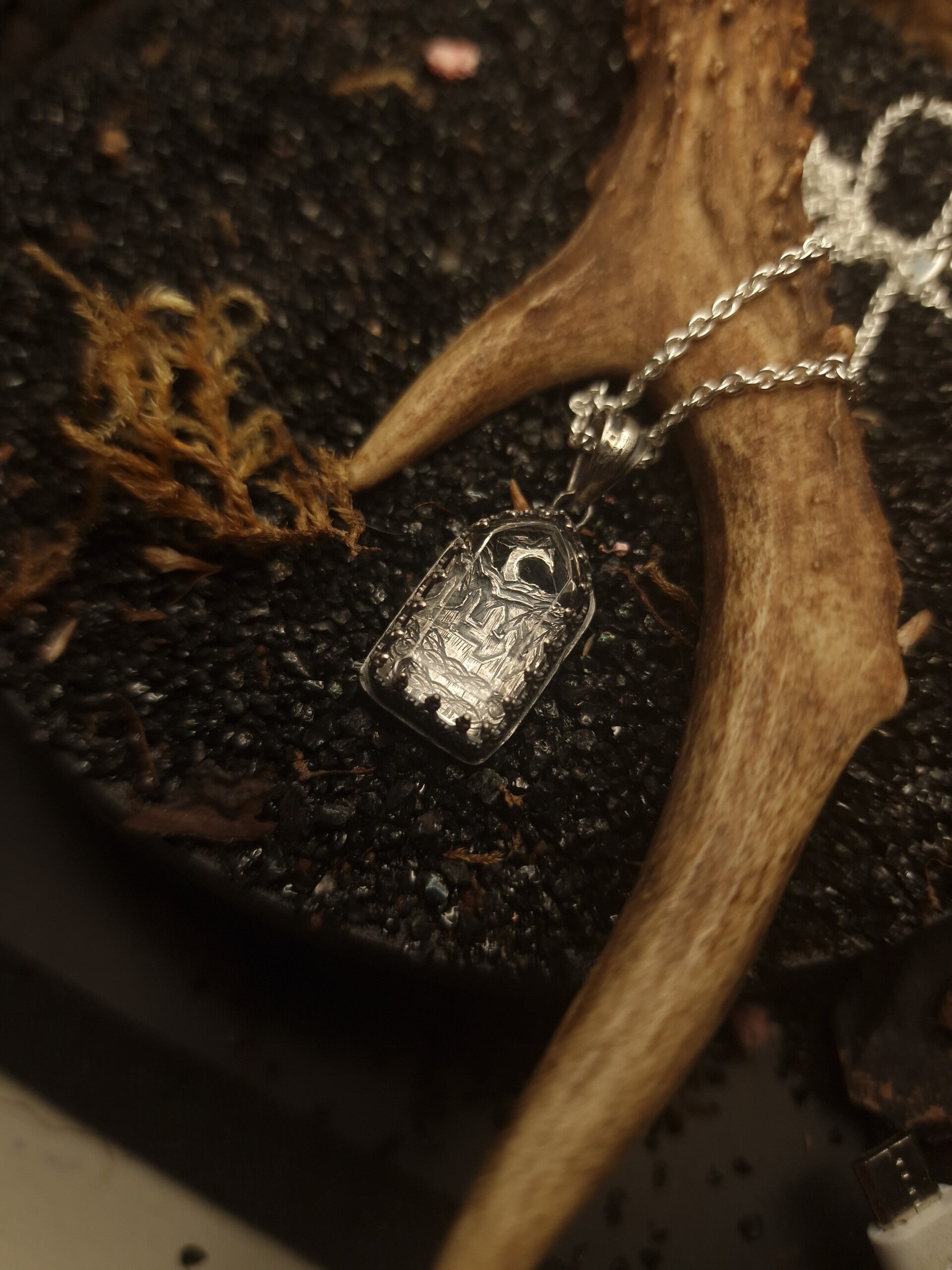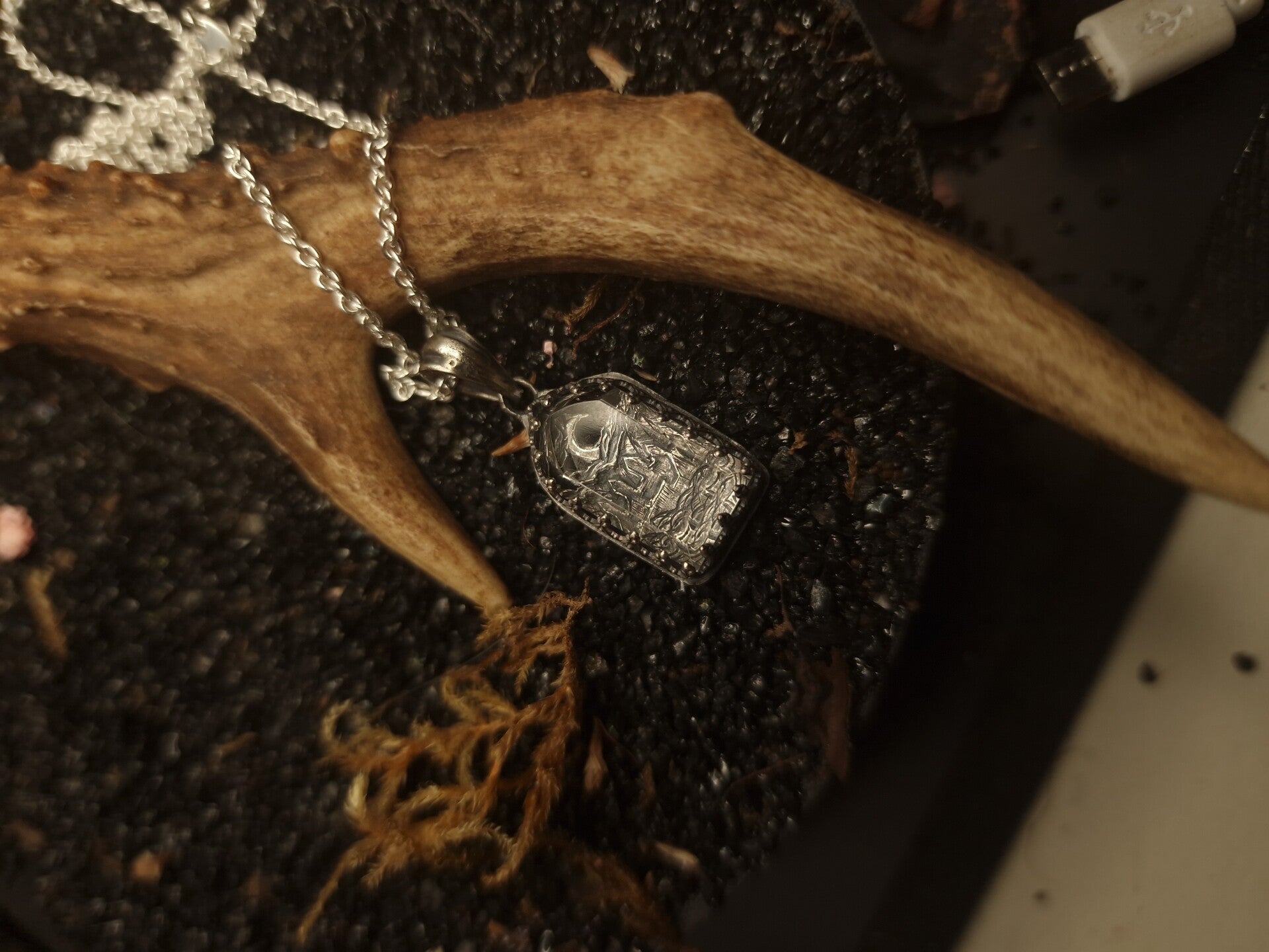The standard price does not include a sterling silver necklace. Instead, the pendant comes with a faux leather cord. Many people already have silver necklaces at home, which can easily be paired with this pendant for a personalized touch. We apply this principle to all pendants where the design allows it, thanks to the inclusion of a bail. Please note that this option does not apply to every necklace design.