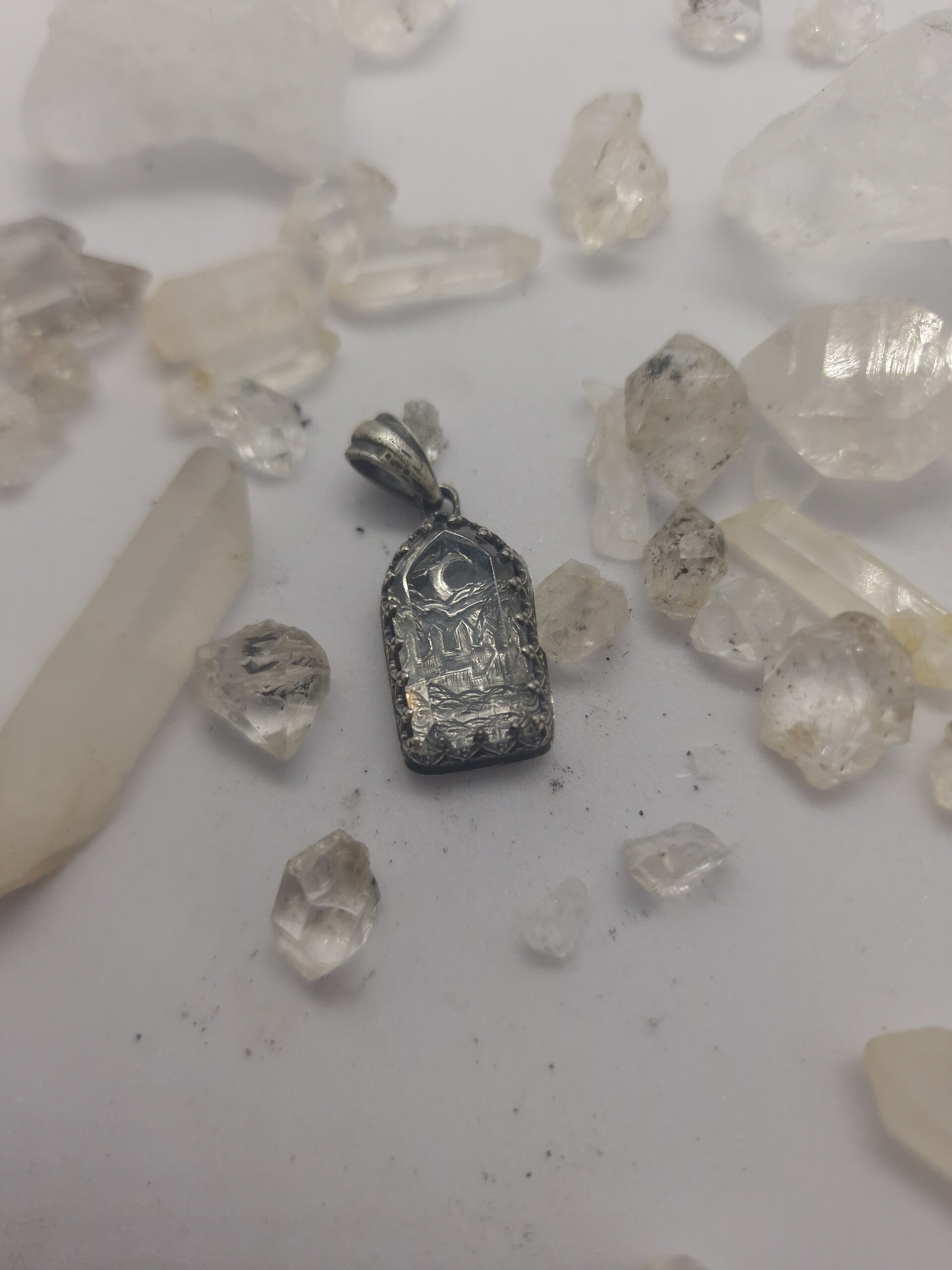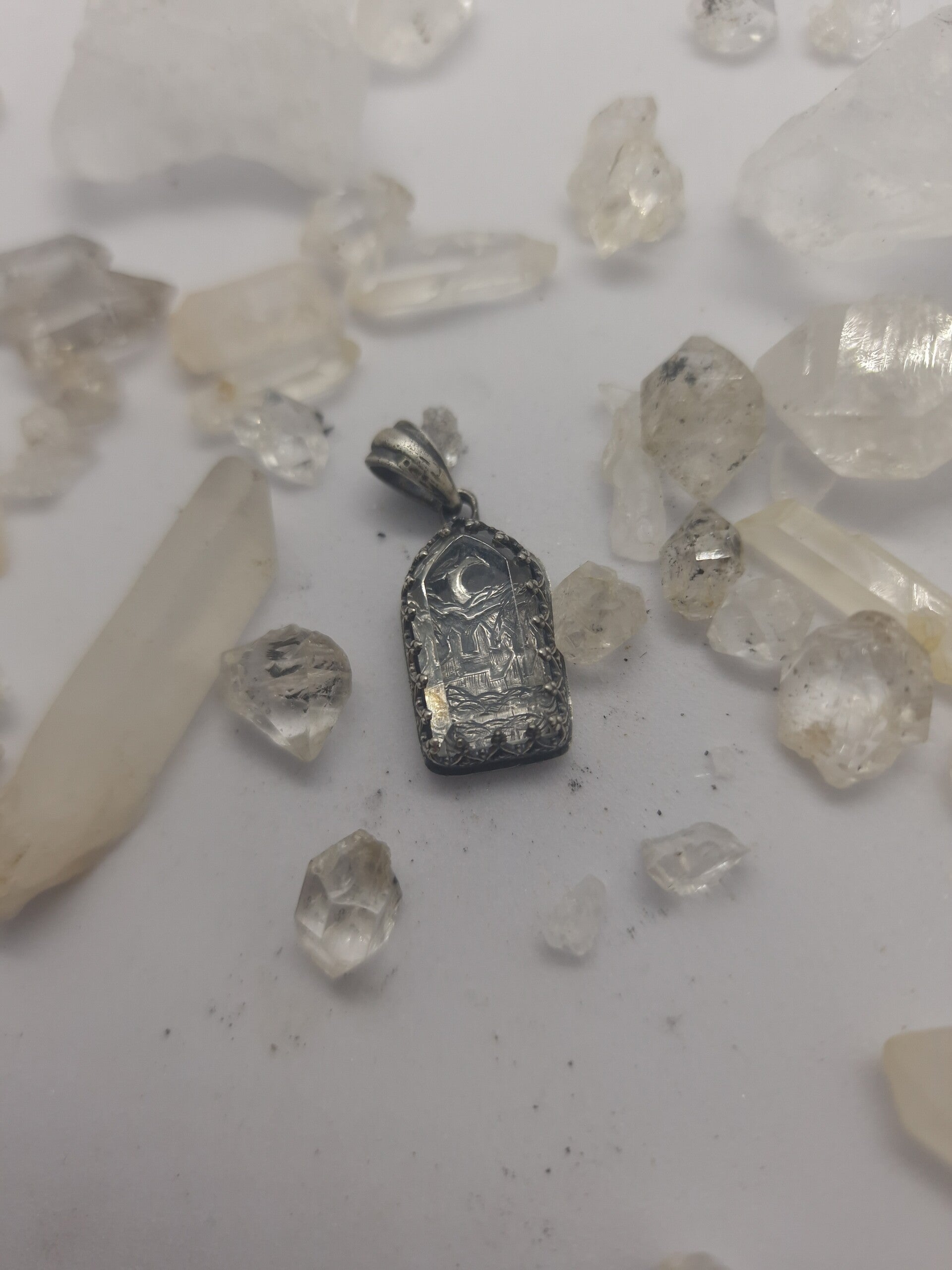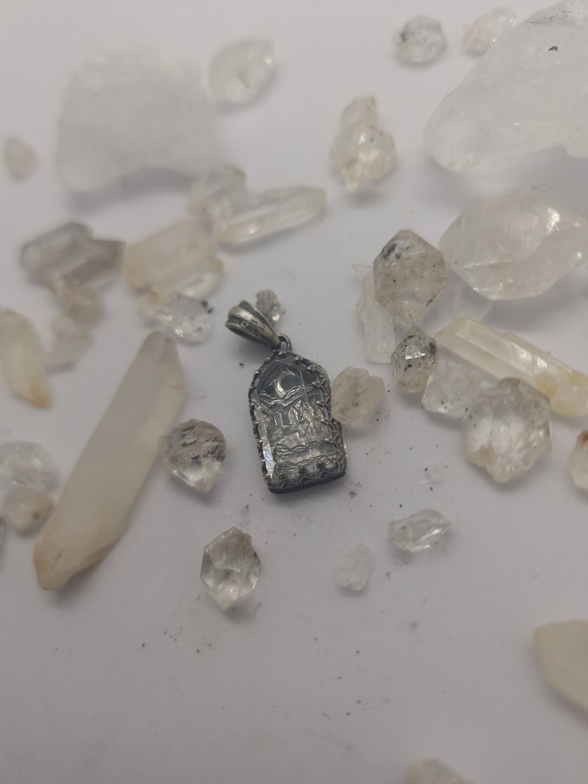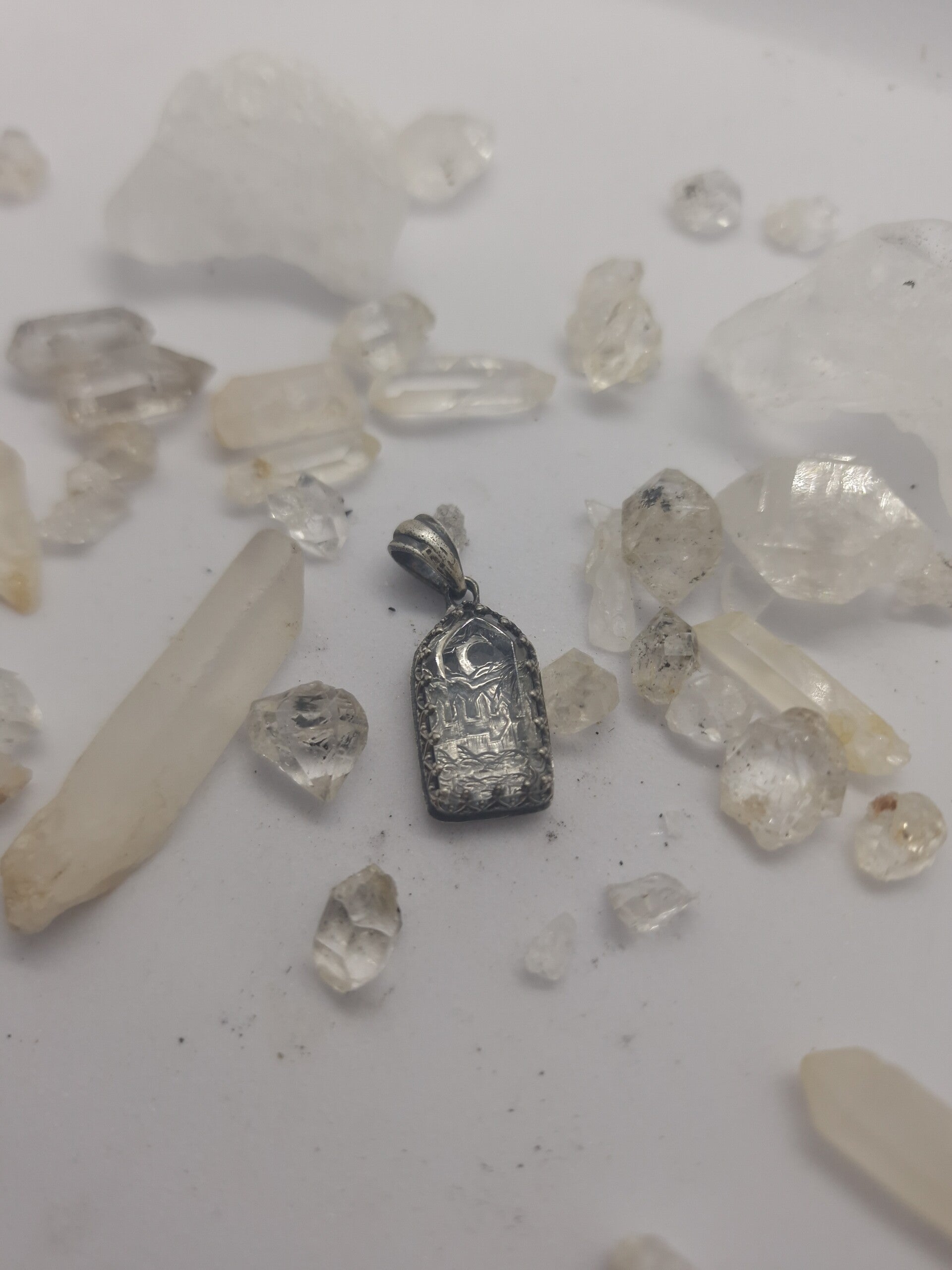 The standard price does not include a sterling silver necklace. Instead, the pendant comes with a faux leather cord. Many people already have silver necklaces at home, which can easily be paired with this pendant for a personalized touch. We apply this principle to all pendants where the design allows it, thanks to the inclusion of a bail. Please note that this option does not apply to every necklace design.