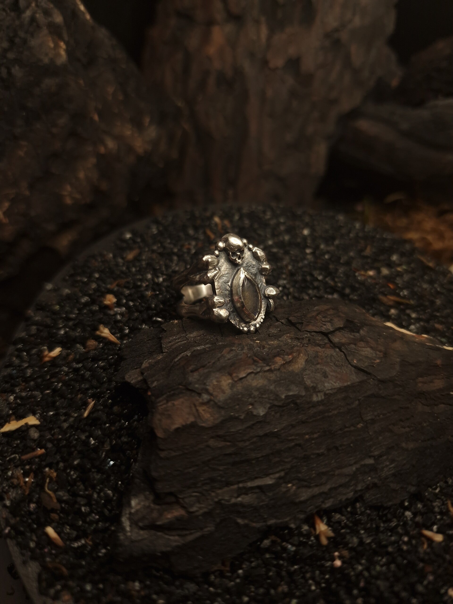 The vivid skull Ring | size 18 | One of a Kind | labradorite | curiosity cabinet
