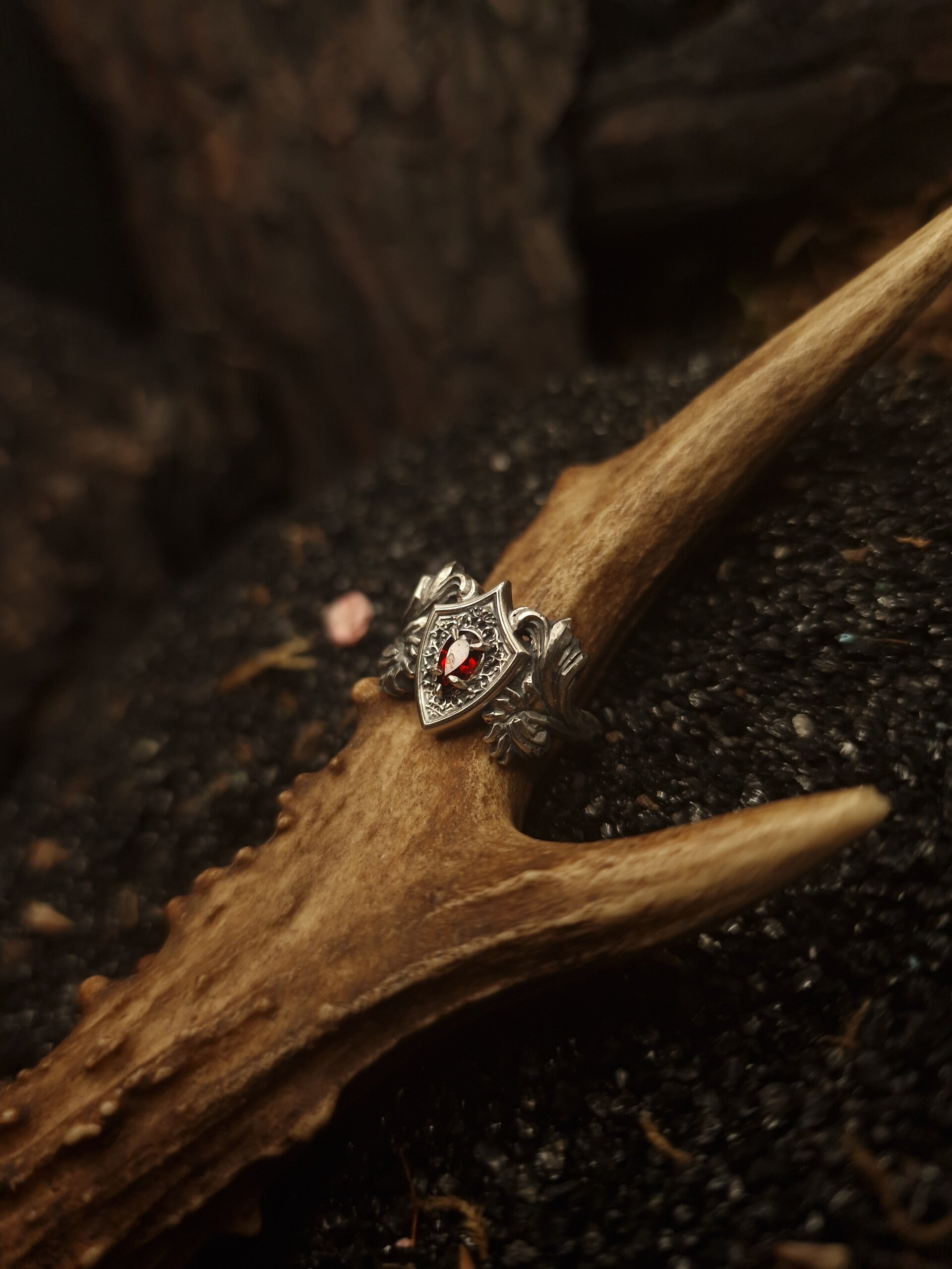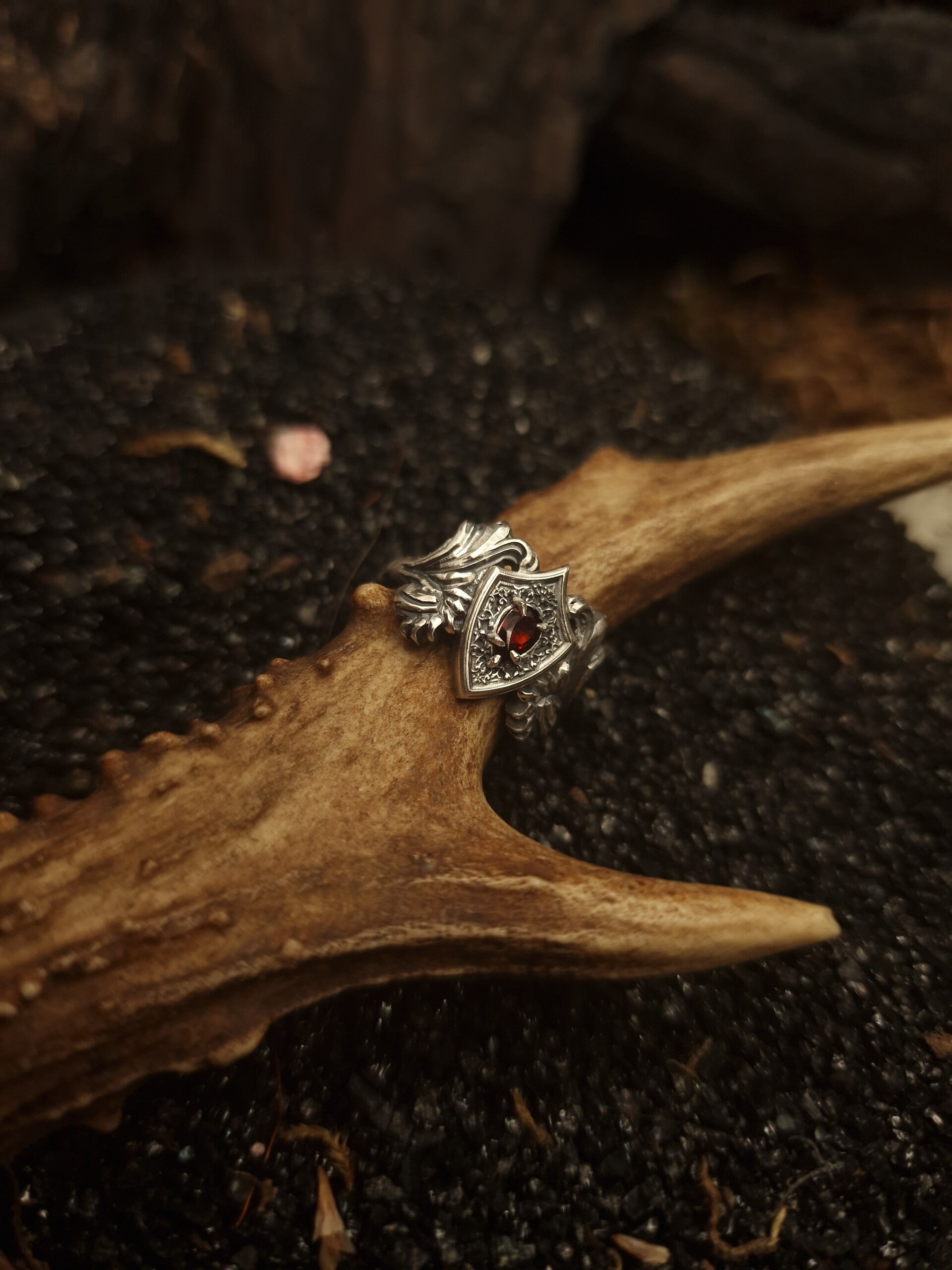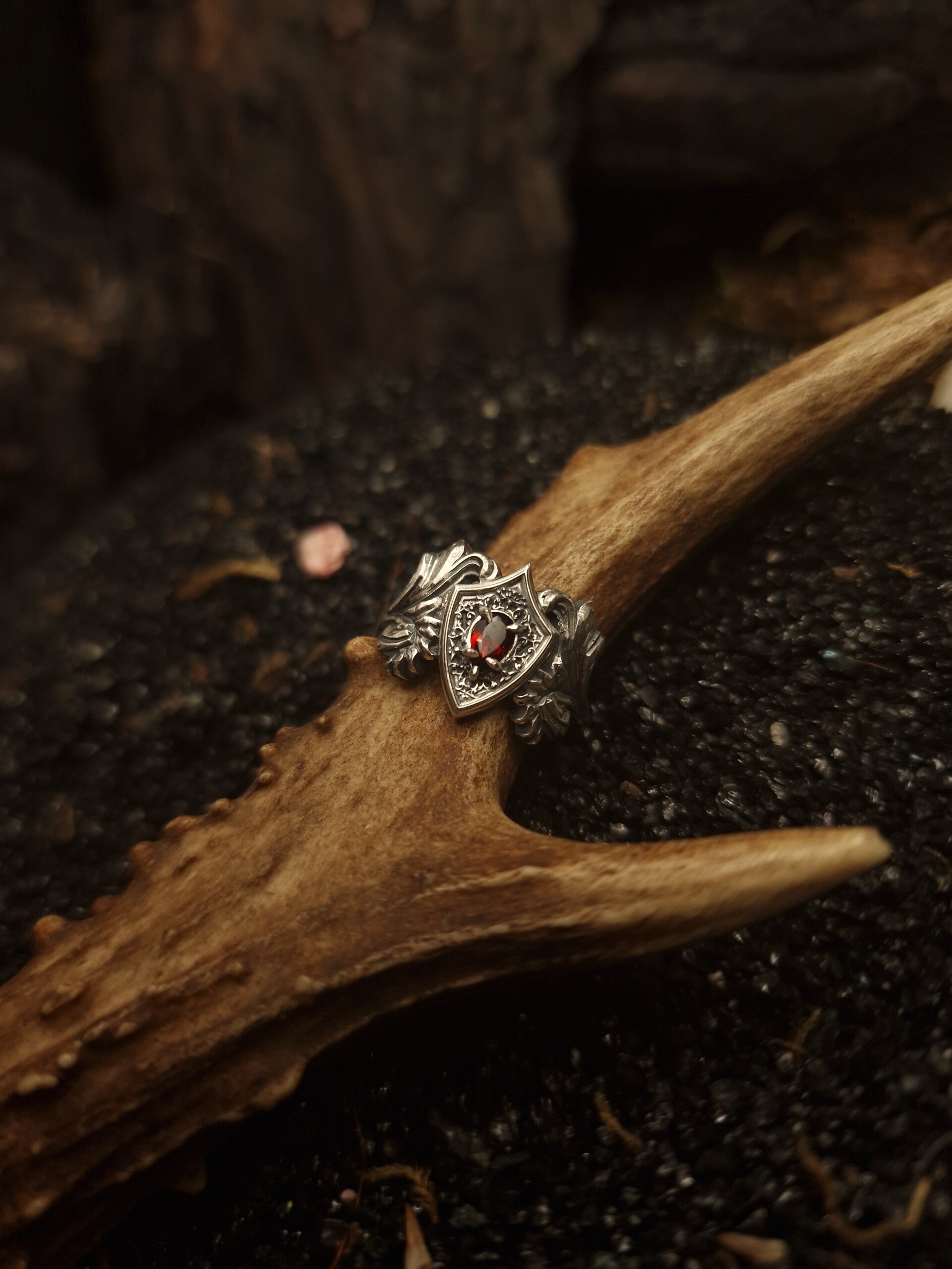 The bloody shield Ring | MTO | garnet | nox ex libris