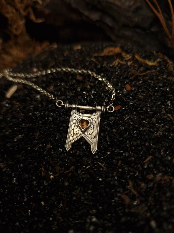The Black Heart Knight Banner Necklace | Smokey Quartz | nox ex libris