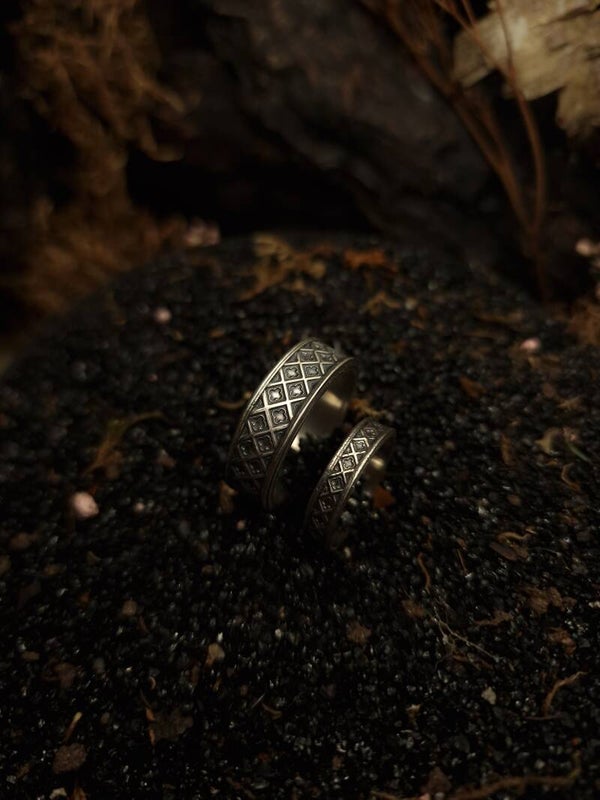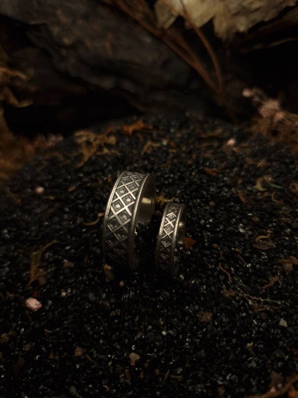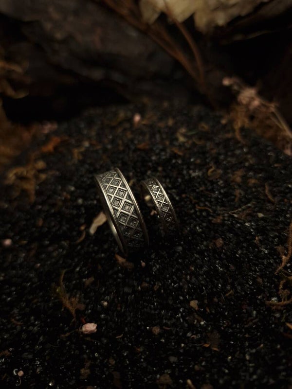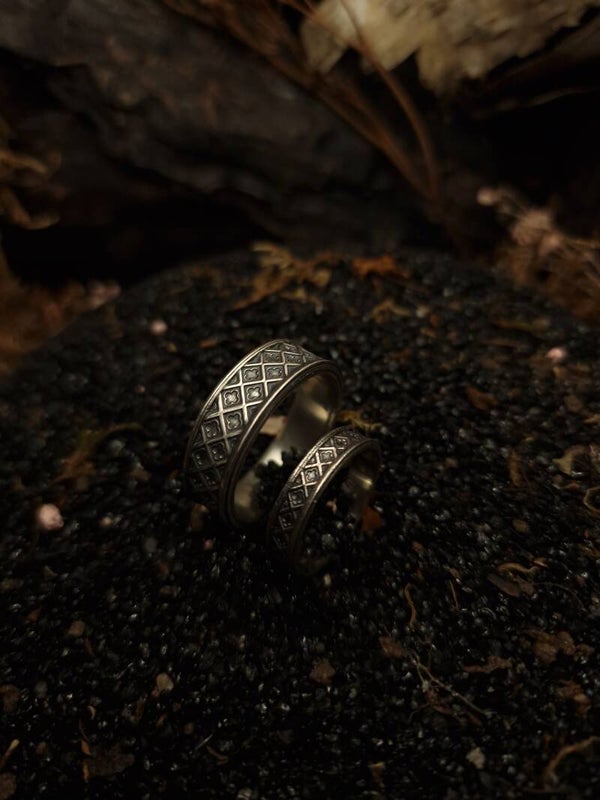 Methods used: 3D designing, 3D printing, casting, sawing, shaping, soldering, stonesetting, engraving, blackening, polishing.