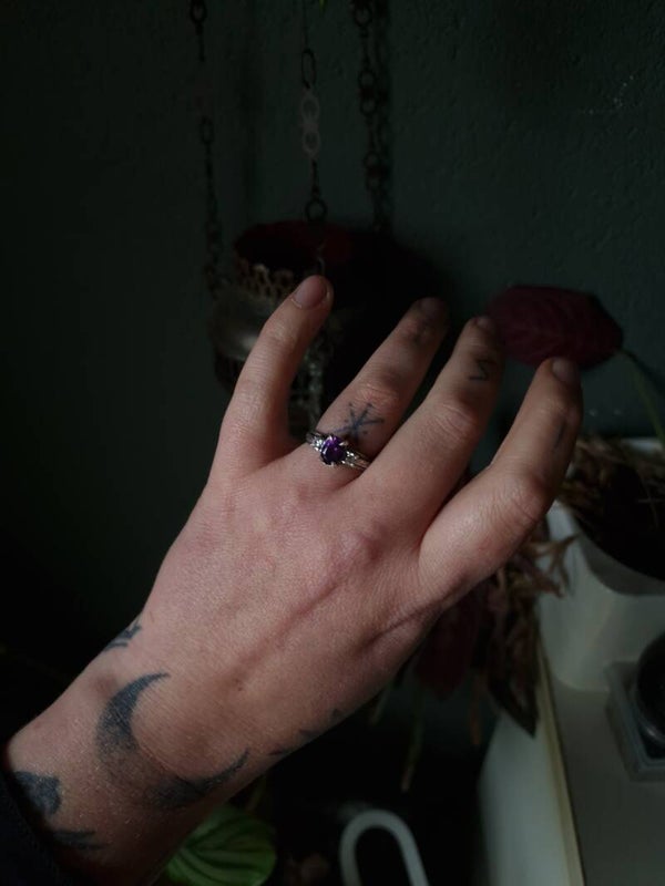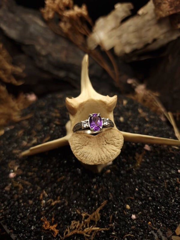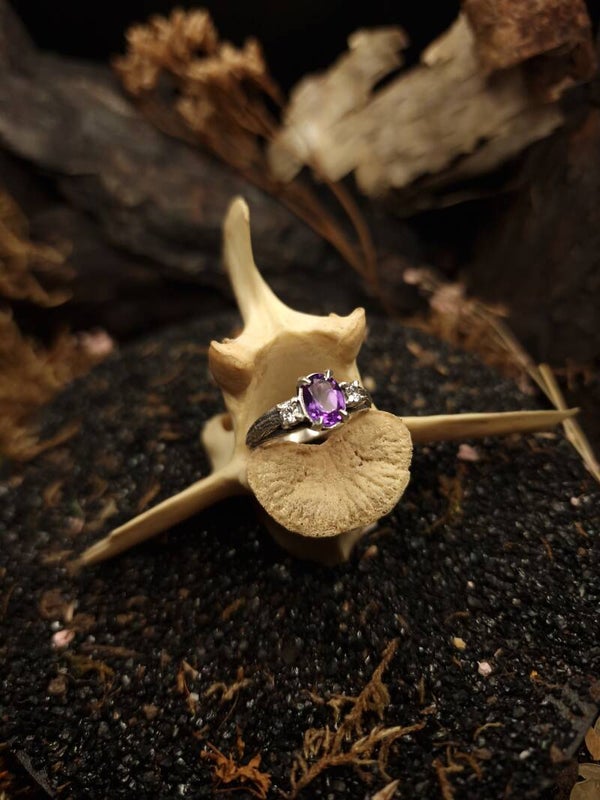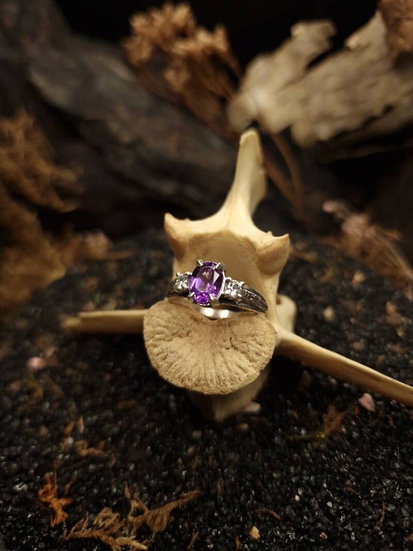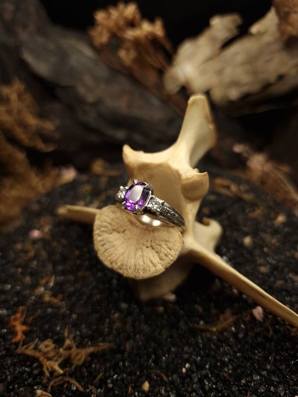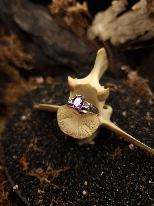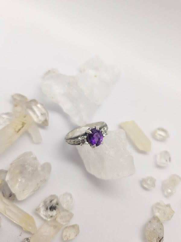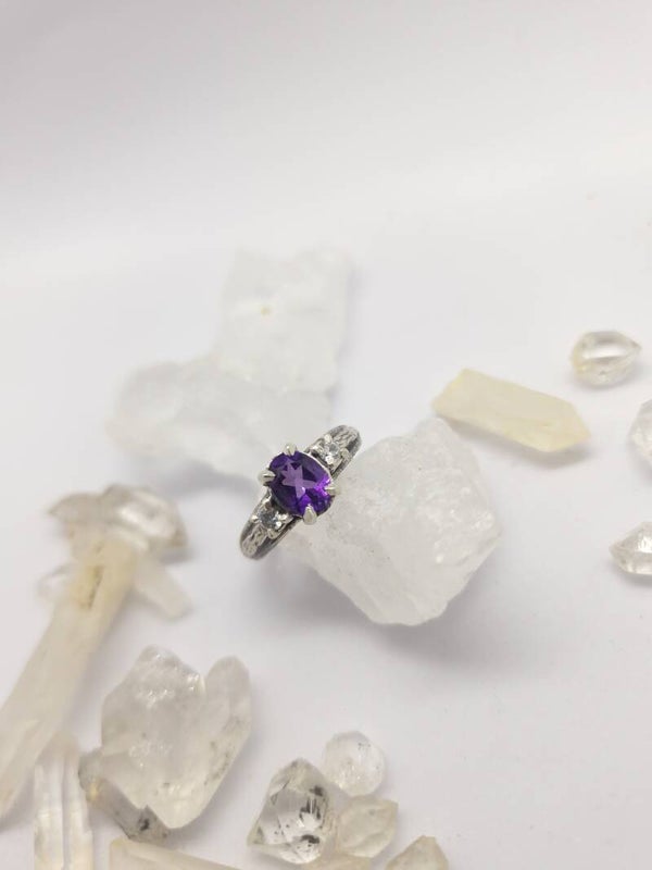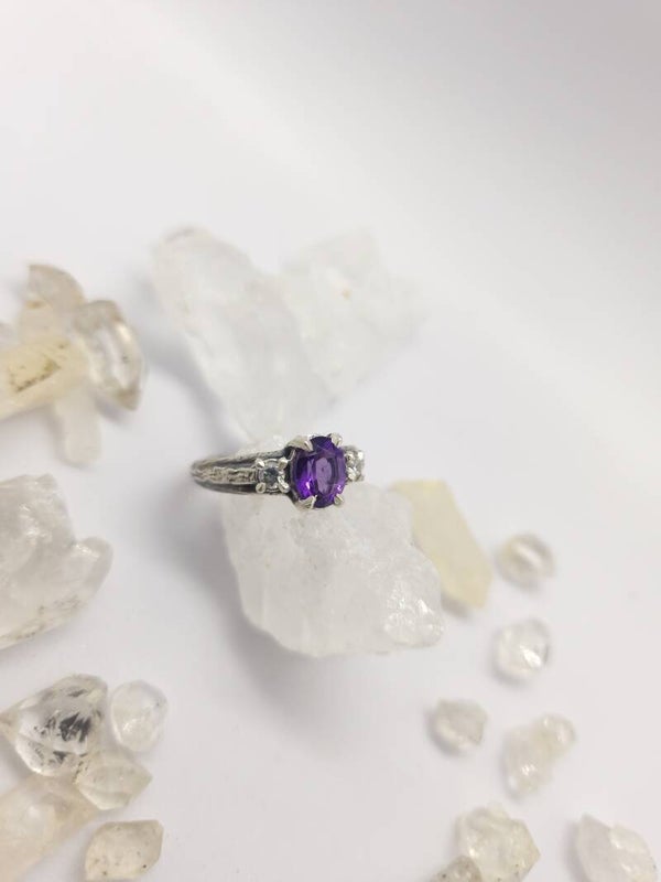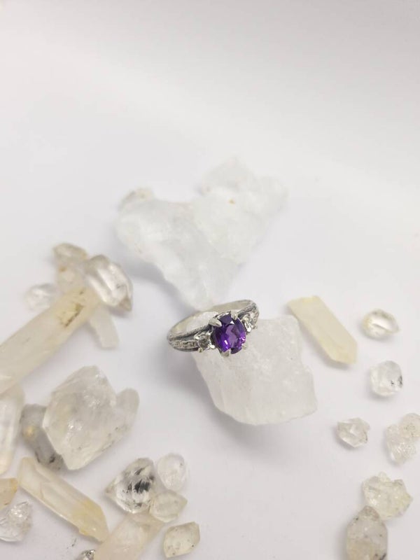 Datura Ring | size 18,5 | Amethyst & Zirconia | curiosity cabinet