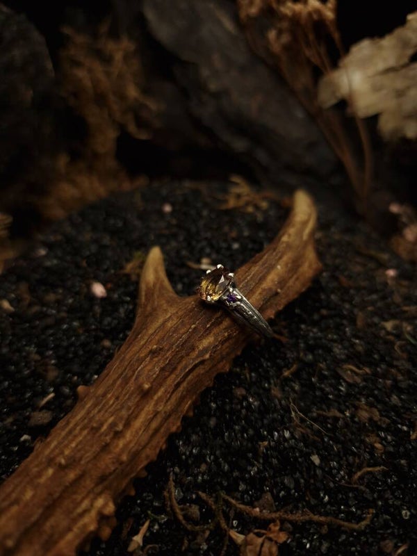 Aconitum Ring | size 16,5 | Ametrine & Amethyst | curiosity cabinet