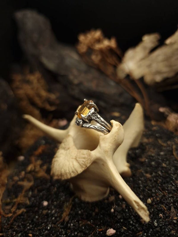 The yellow rose Ring | size 18 | Burned Amethyst | curiosity cabinet