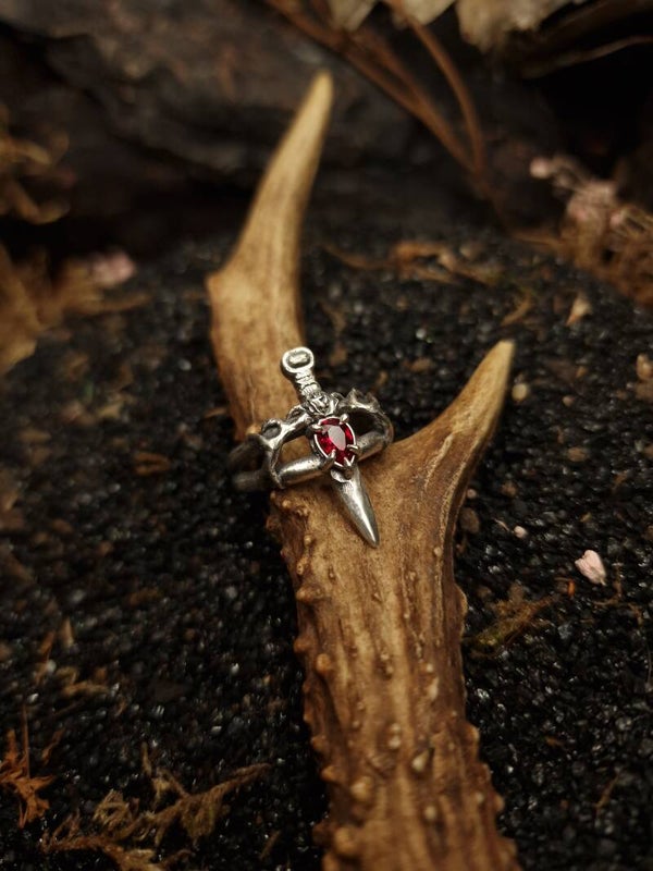 The Bloodied Dagger Ring | MTO | Ruby | Nox Ex Libris
