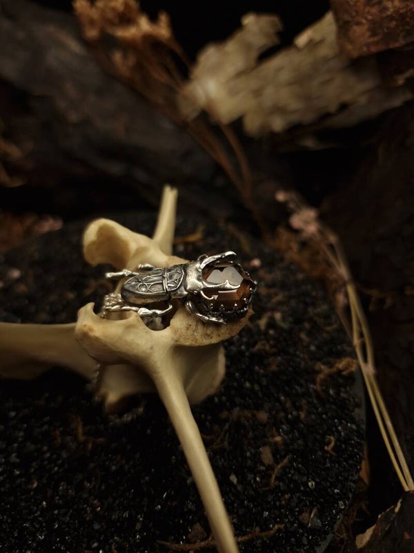 Methods used: 3D printing, lost wax casting, shaping, soldering, finishing, stone setting, blackening, polishing.