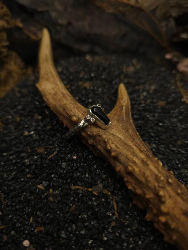 The Deceased Ring | size 18 | Onyx & Diamonds | Curiosity Cabinet