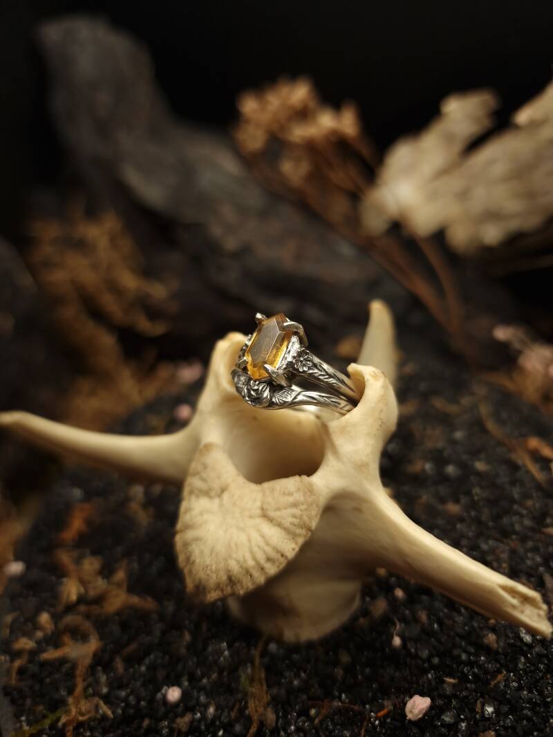 Methods used: 3D designing, 3D printing, casting, sawing, shaping, soldering, stonesetting, engraving, blackening, polishing.