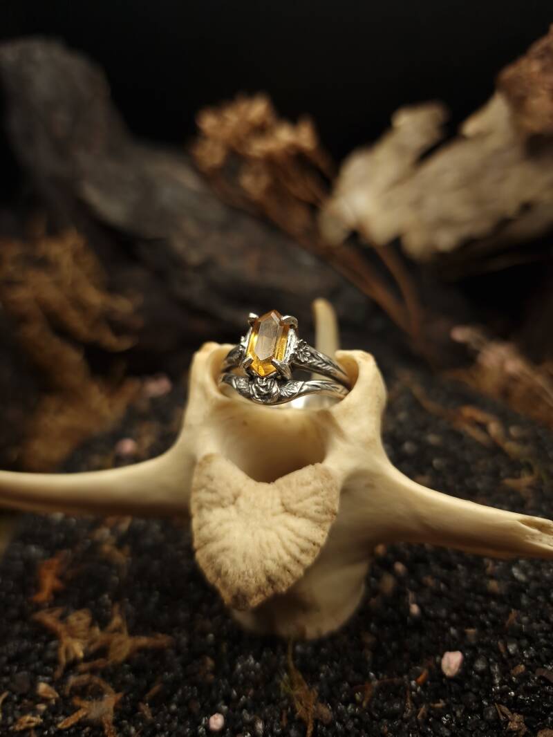Personal order for Morwenna, The yellow rose ring but with an oval garnet stone.