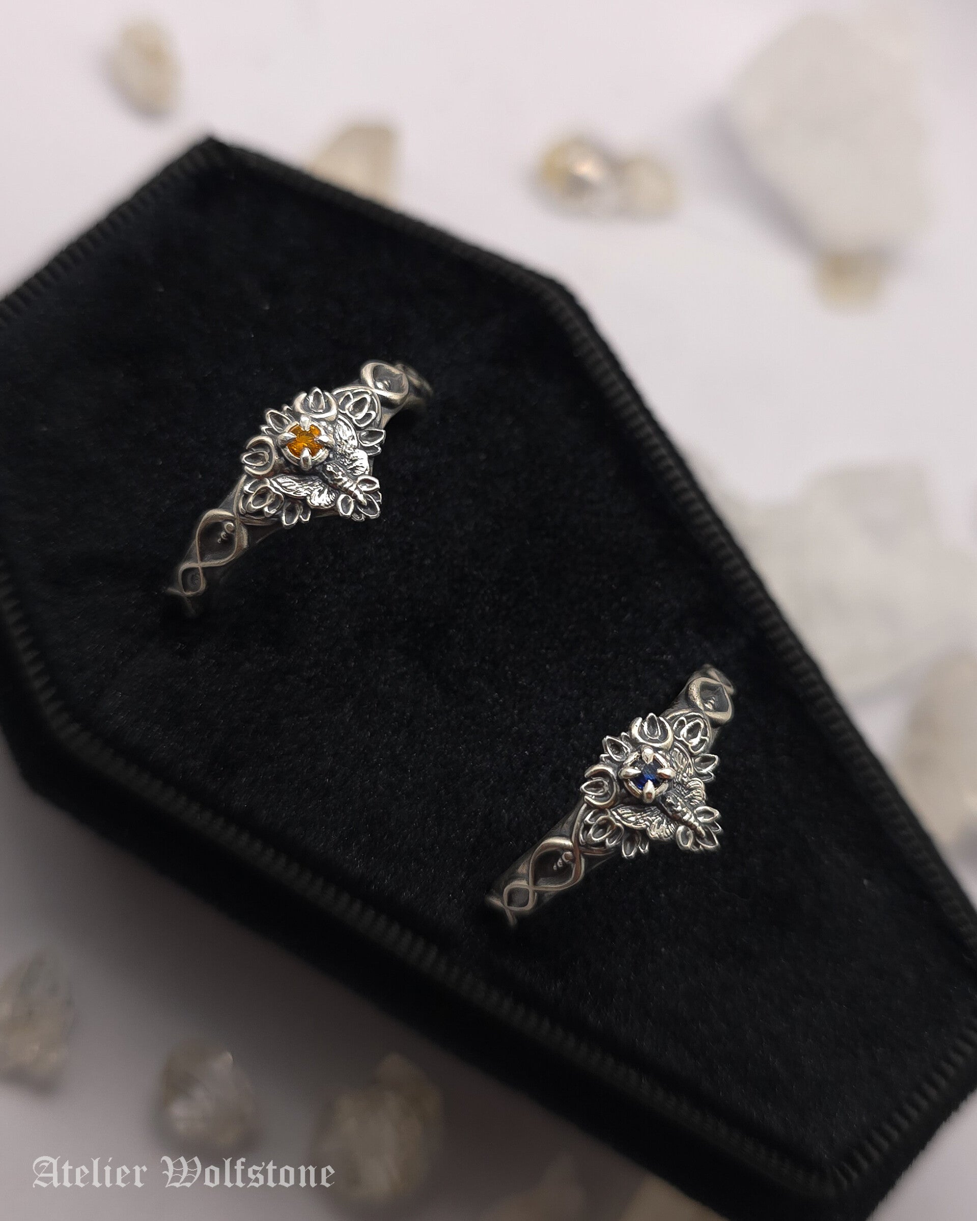 This ring reveals its story slowly. It is meant to be discovered, not announced. A talisman for witches, whimsygoth baddies and lovers of dark natural symbolism.