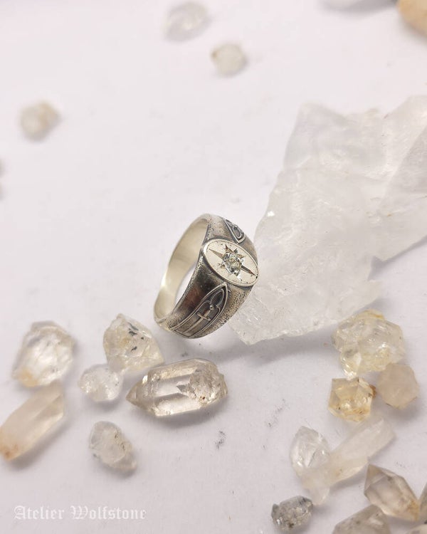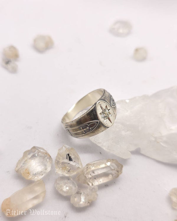 The Regal Knight Signet Ring | size 17 | One of a Kind | White Topaz | Nox ex Libris | 9-2 release