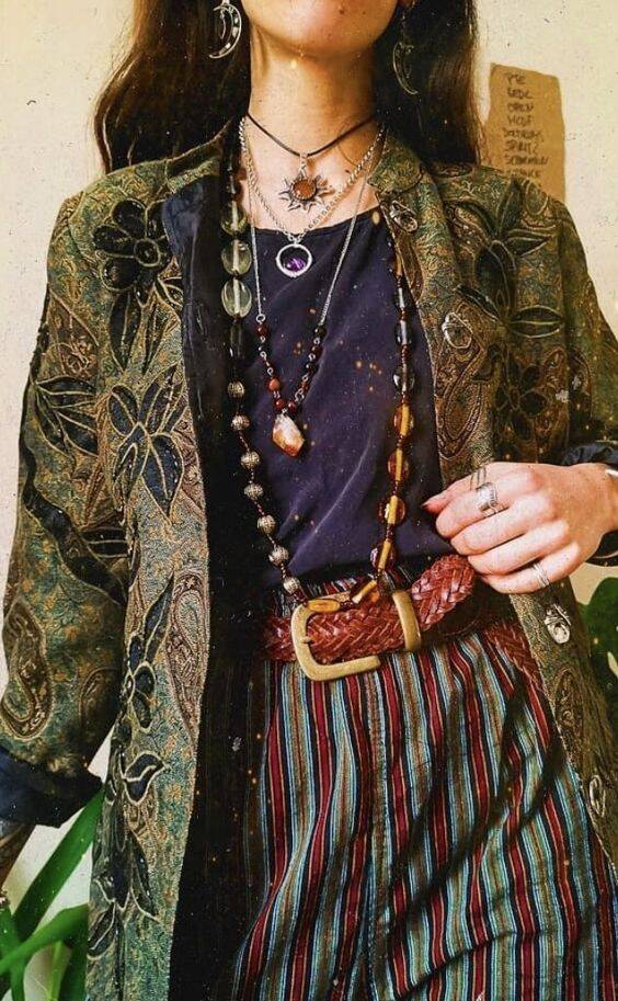 Choose jewelry adorned with mystical symbols such as moons, stars, and mythical creatures to enhance the enchanting vibe.