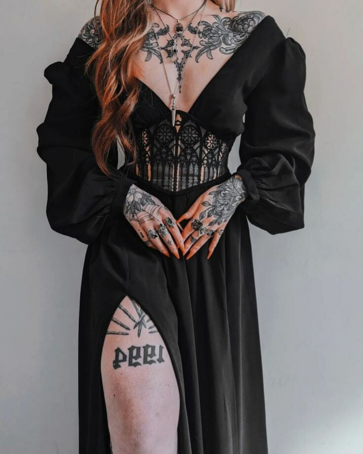 If you love the dark elegance of Victorian goth, the mysticism of witchy aesthetics, and the grandeur of medieval cathedrals, Cathedral-Core offers the perfect blend of all three. It’s a style that feels both sacred and rebellious, historical and otherworldly—perfect for fashion goths who want to channel their inner dark priestess or vampire queen.